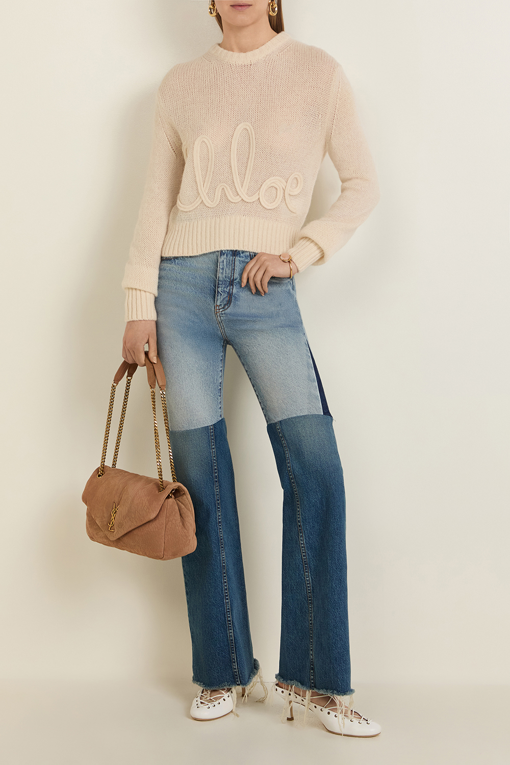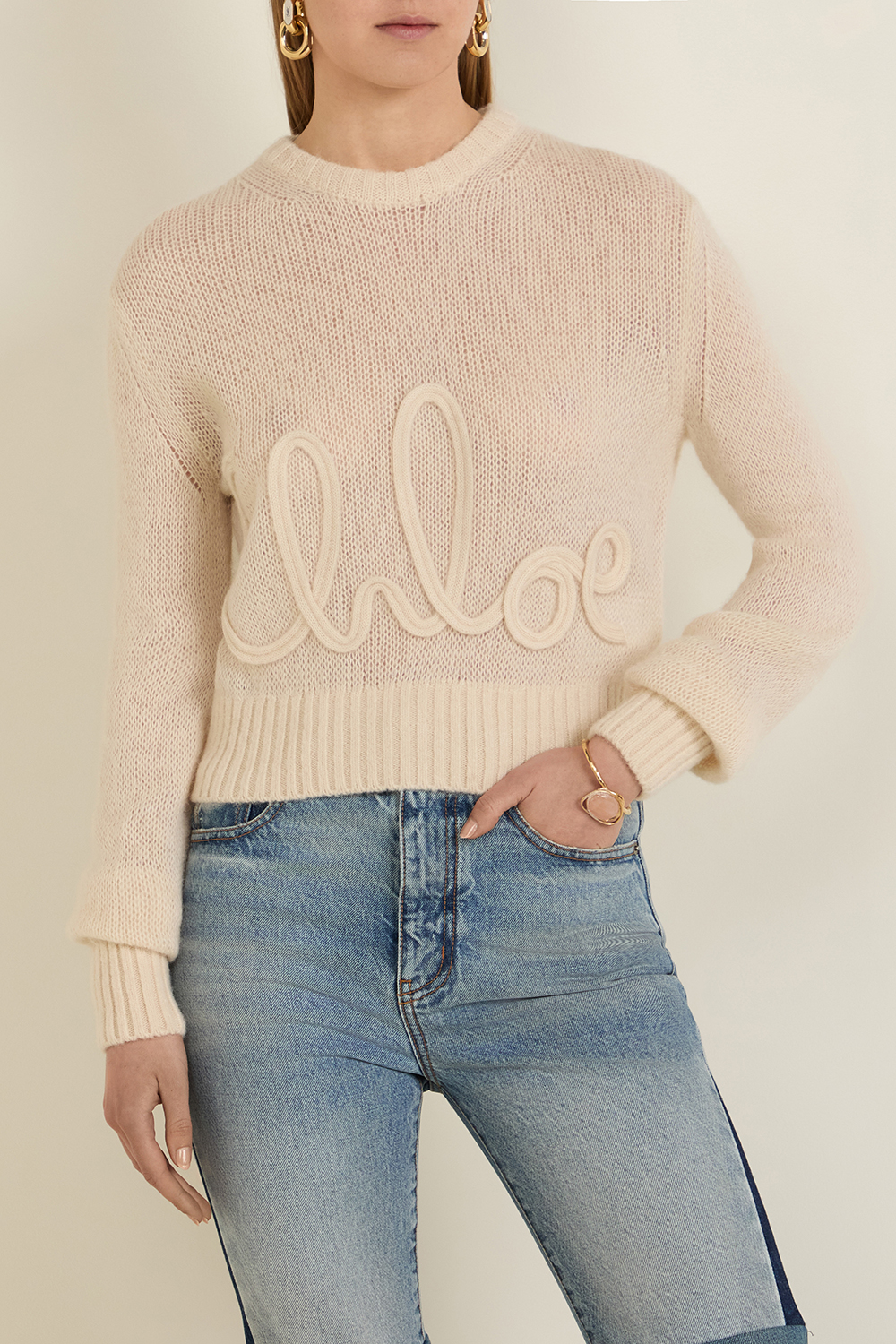 סריג צמר רך ונעים מבית Chloe, עשויה צמר בצבע שמנת בשילוב שם המותג.
