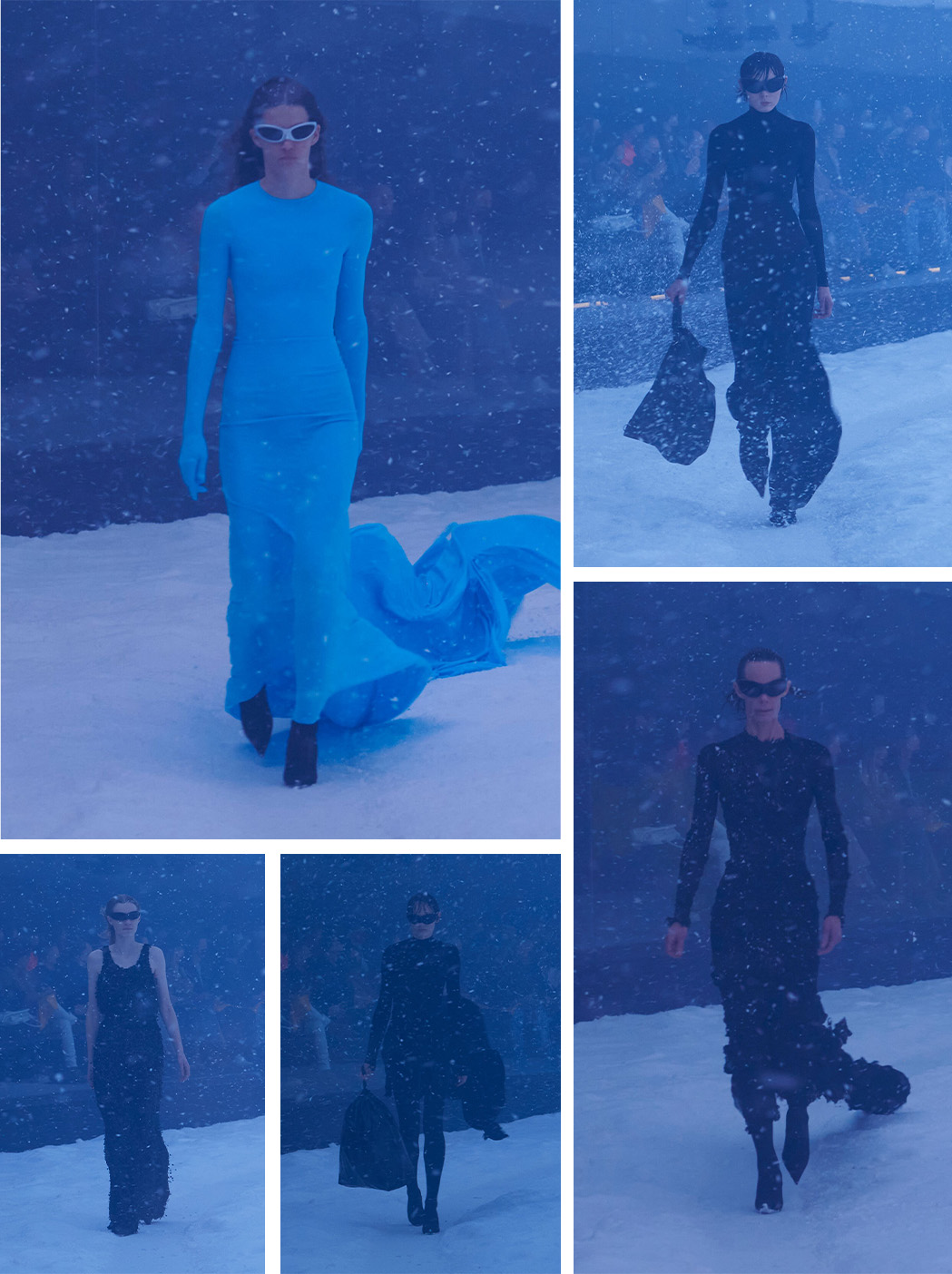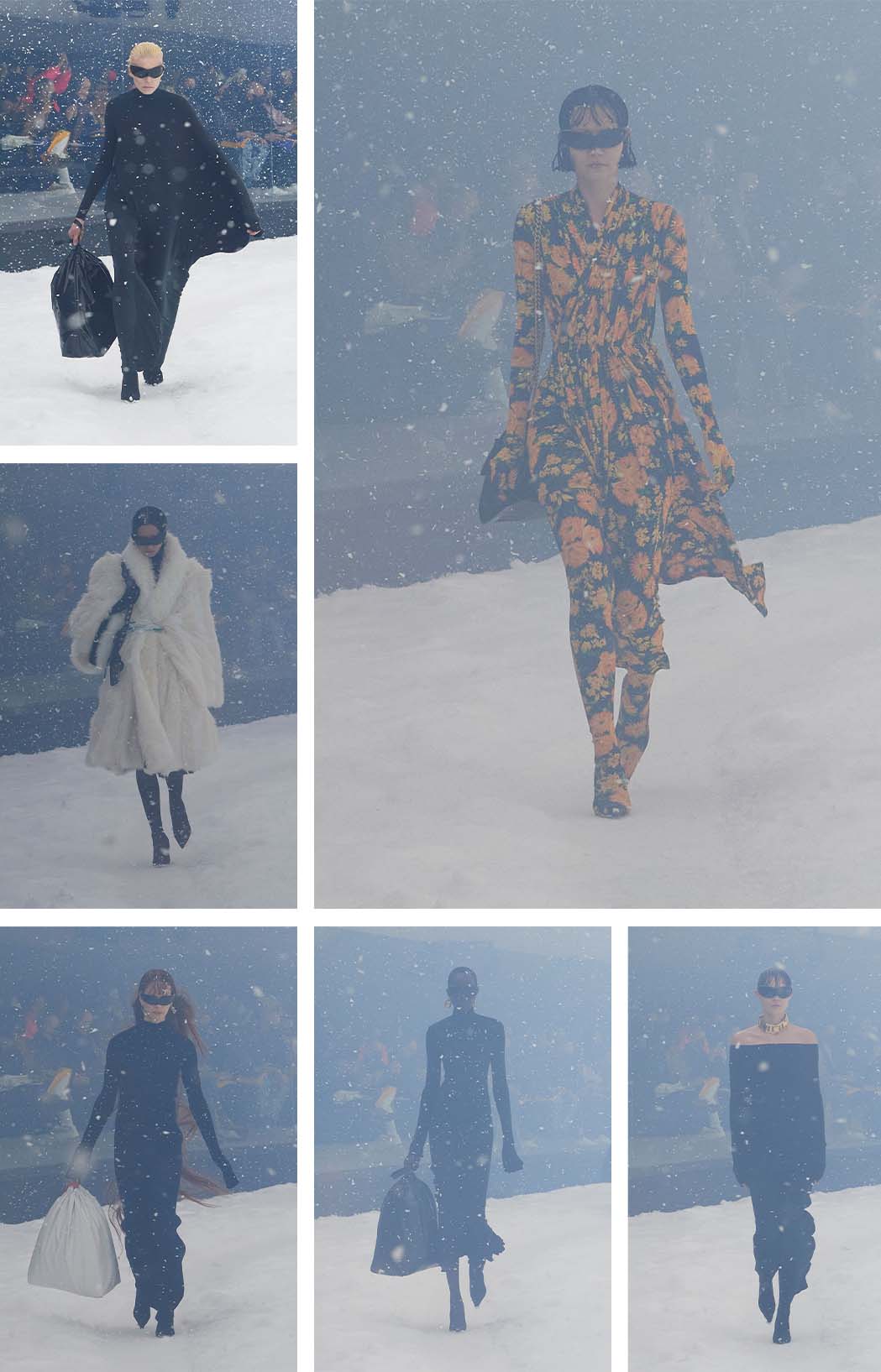 התצוגה של בלנסיאגה הוקדשה להזדהות ותמיכה במאבק האוקראיני, עם מראות אפוקליפטיים שהזכירו את תמונות הפליטים, ומילים מרגשות מהמנהל האמנותי דמנה גווסאליה