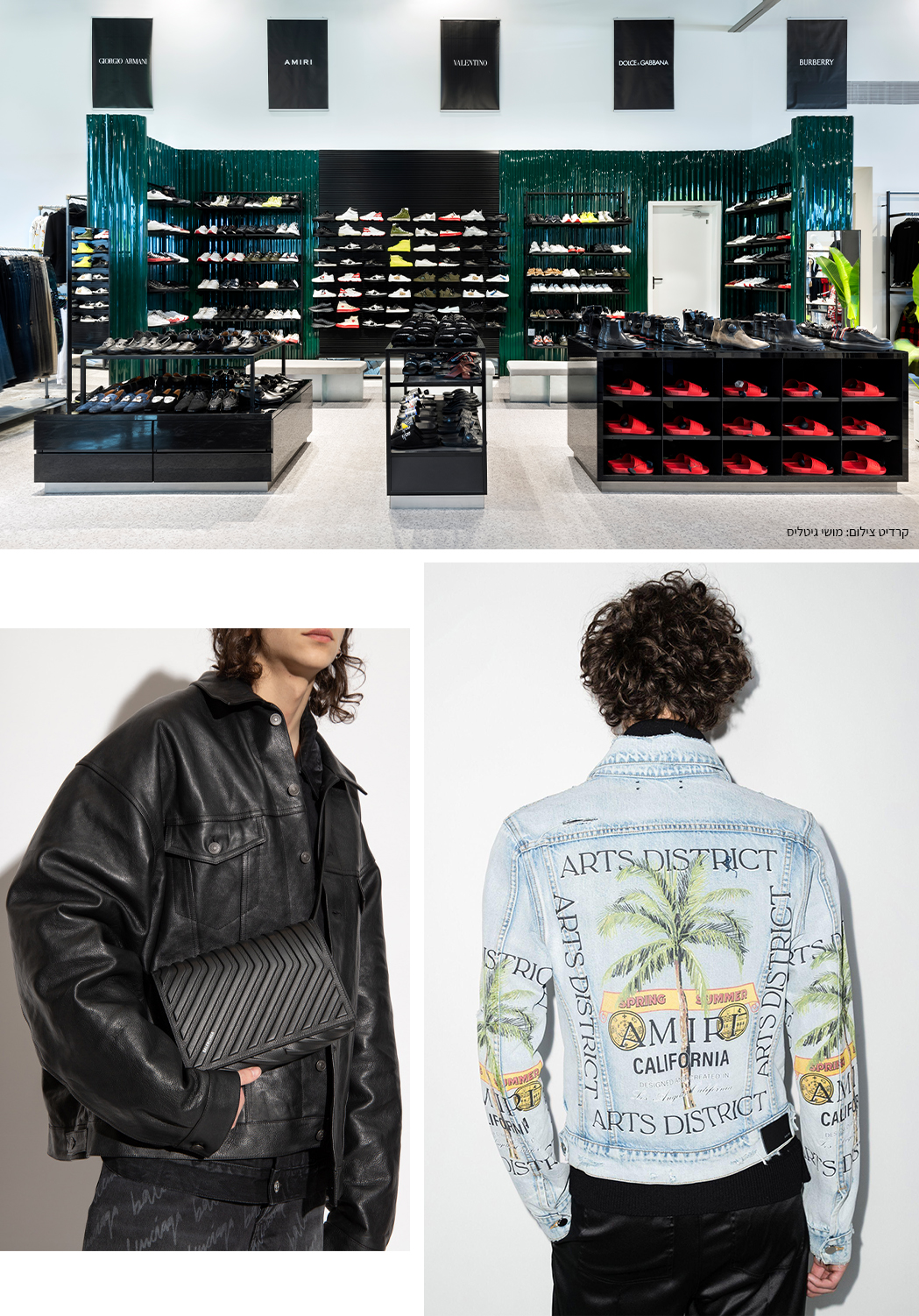 מי שמחפש את המראה המחויט למשרד, לאירועים או לחתונות ייהנה מאזור המעניק תשומת לב לחליפות, חולצות מכופתרות ומכנסיים מחויטים מבית ברברי, מקווין ודולצ'ה וגבאנה. מי שמתחבר לעולם הסטריט-וור יהנה מקולקציות של מותגי הסטריט הכי פופולריים, עם דגמים שלרוב נחטפים מהר – חולצות, מכנסיים, סווטשירטים ואקססוריז מבית בייפ, קארהארט, דרול דה מונסייה ועוד. בקטגוריית הדנים בולטים במיוחד ג'ינסים מבית דולצ'ה וגבאנה, ולנטינו ואמירי.