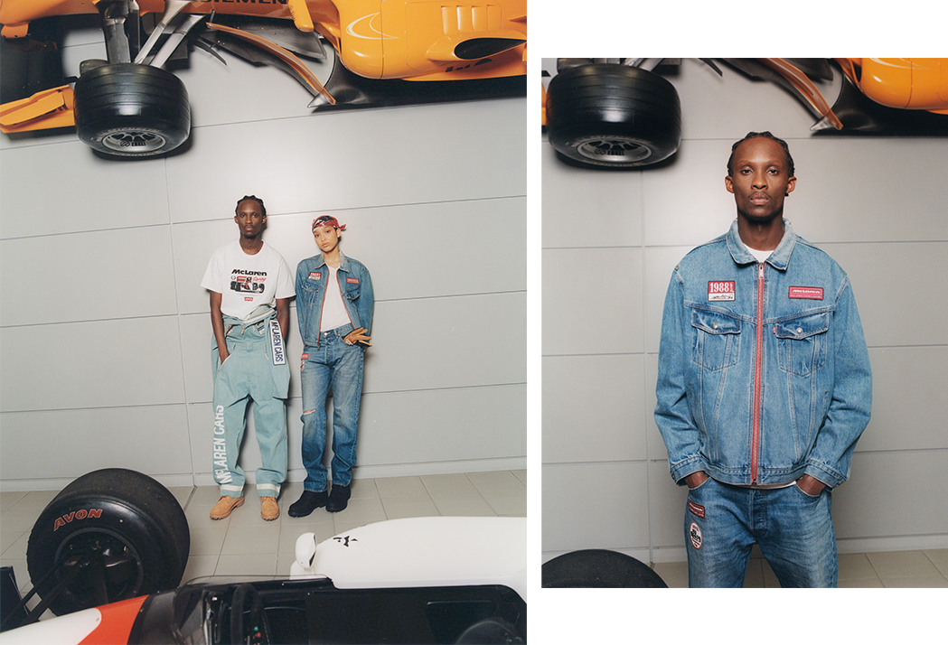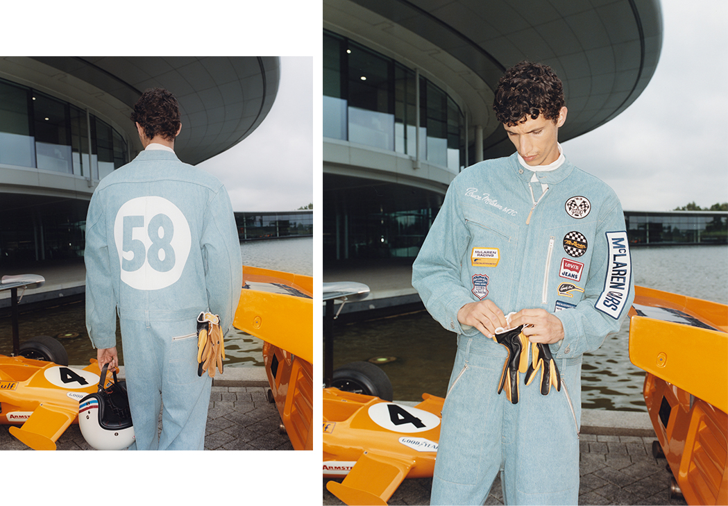 החיבור המסקרן בין ליווייס למקלארן יצר קולקציה על טהרת הדנים בהשראת מכוניות המרוץ של מקלארן. בהיבט העיצובי, יש דגש על מראה הווינטג' שנשען על מכוניות המירוץ משנות השמונים, המתעוררות כעת לחיים בגלגול אופנתי. כמה מהדגמים האייקונים של ליווייס זוכים לפרשנות עיצובית בהשראת האלמנטים המזוהים עם מכוניות המרוץ, וכך הכחול של הדנים זוכה לנגיעות של כתום ואדום, בשילוב פרינטים מקוריים ופאצי'ם עם לוגואים וכיתובים מז'אנר המרוצים.
