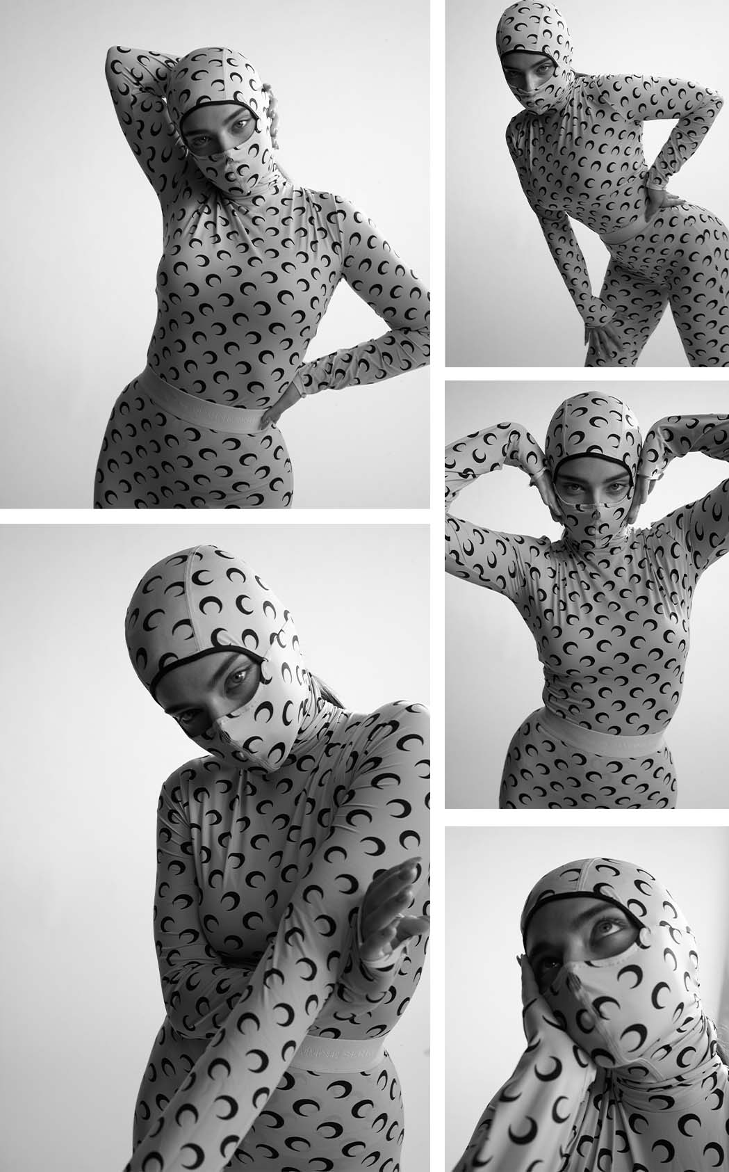 המעצבת הצרפתיה MARINE SERRE, שסומנה כקול המבטיח של תעשיית האופנה, אחראית על אחד הלוקים המפתיעים. נועה לבשה סט הכולל טופ ומכנסיים צמודים, בשילוב מגפיים ומסכה המציגים כולם את הדפס הירח הרפטטיבי שהפך את המעצבת הצעירה לשם דבר. כזכור, חתימת הירח עלתה לתהילה במאי 2019, כשמלכת הפופ ביונסה התייצבה למשחק כדורסל לבושה בדגמי המותג המציגים את ההדפס המדובר, שיוצר מראה חדש ומרתק.