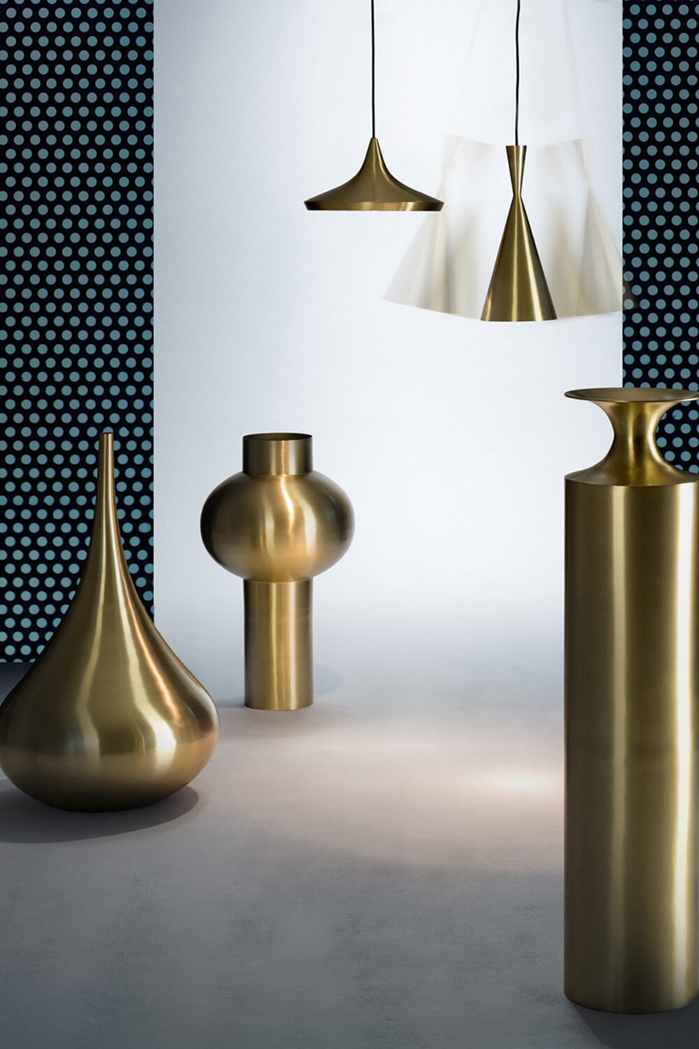 טום דיקסון נחשב כיום לאחד המובילים והמבוקשים ביותר בסצנת העיצוב העולמית. לדיקסון מוניטין מפואר ונושא פרסים יוקרתיים- ופריטיו שהפכו לאייקונים- מוצגים במוזאונים הגדולים ברחבי העולם. עבודותיו מאופיינות בפונקציונאליות מודרנית ובמינימליזם צורני ומשלבות עושר חומרי. זהו אגרטל רצפה גדול מתוך הסדרה Beat - הכוללת שלושה כלים מפוסלים בהשראת כדי המים הקדומים ואשר גימורם המלוטש תואם את סדרת גופי התאורה הנושאת את אותו השם. האגרטל עשוי על ידי בעלי מלאכה אומנים בצפון הודו- מפליז בדוגמה מעוקלת- השוברת את קרני האור לכדי נצנוץ מוזהב ומבריק. יעבוד נהדר לצד אובייקטים נוספים מתוך אותה הסדרה ויהיה נפלא כפסל נוי לסלון או לחדר השינה.
