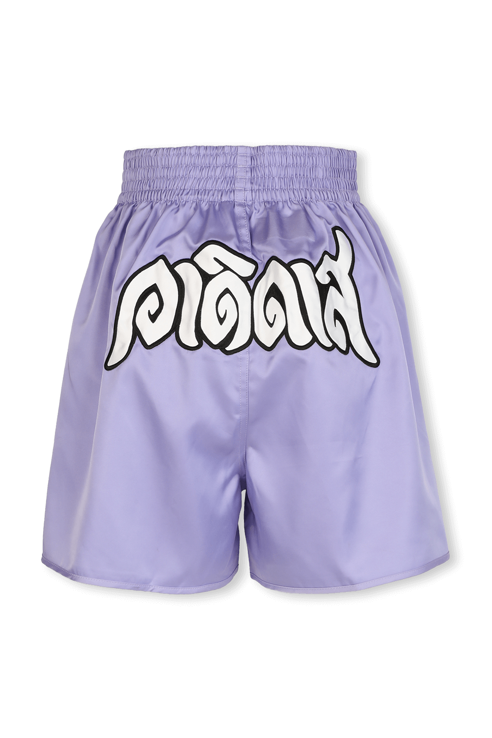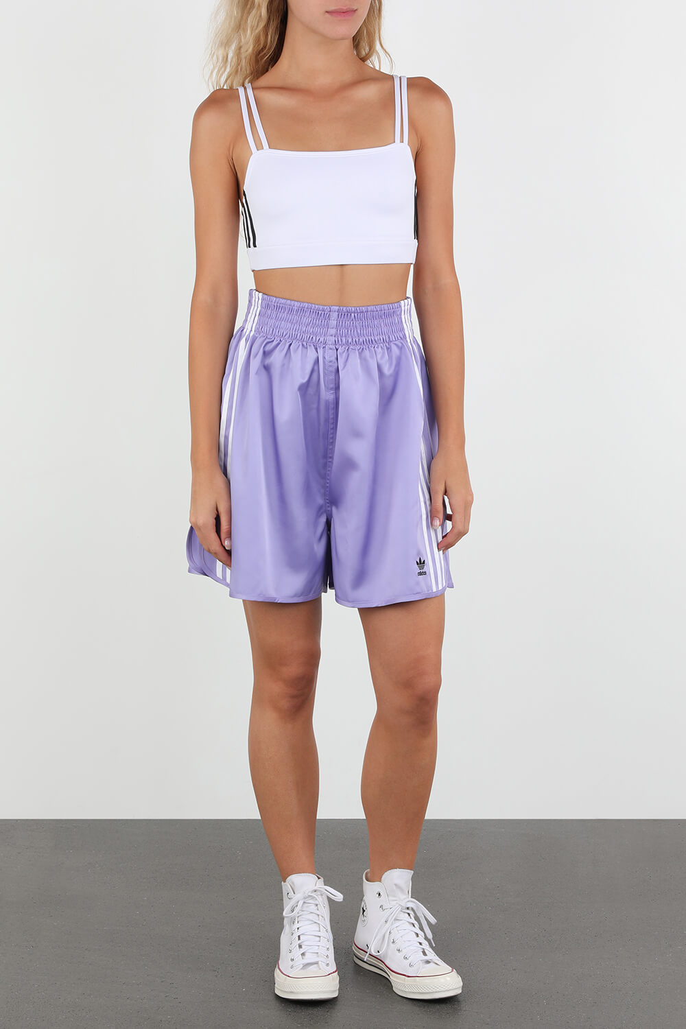 ענקית הספורט והאופנה אדידס בשיתוף פעולה מסקרן עם המותג הבנקוקי Dry Clean Only. שיתוף פעולה העושה שימוש בפריטים אייקונים ומעניק להם חיים חדשים - עיצוב עדכני וייחודי. אלו מכנסיים קצרים בגימור סאטן מבריק בגוון סגול בעיצוב השואב השראה מתרבות האיגרוף התאילנדית ומציג גזרת בוקסר משוחררת ונינוחה עם חגורת מותן אלסטית להתאמה ונוחות מרבית. שלושת הפסים האייקונים למותג מעטרים את אורכם של השרוולים לצד רקמת לוגו המותג בגוון אדום הממוקמת סמוך לאמרה השמאלית. כיתוב המזוהה עם תרבות האיגרוף התאילנדי מתנוסס בחלקם האחורי בגווני לבן ואדום ומשלים את עיצובם העדכני והסופר קול של המכנסיים. סגנני עם גופיית קרופ צמוד להשגת מראה סטריט מוביל.