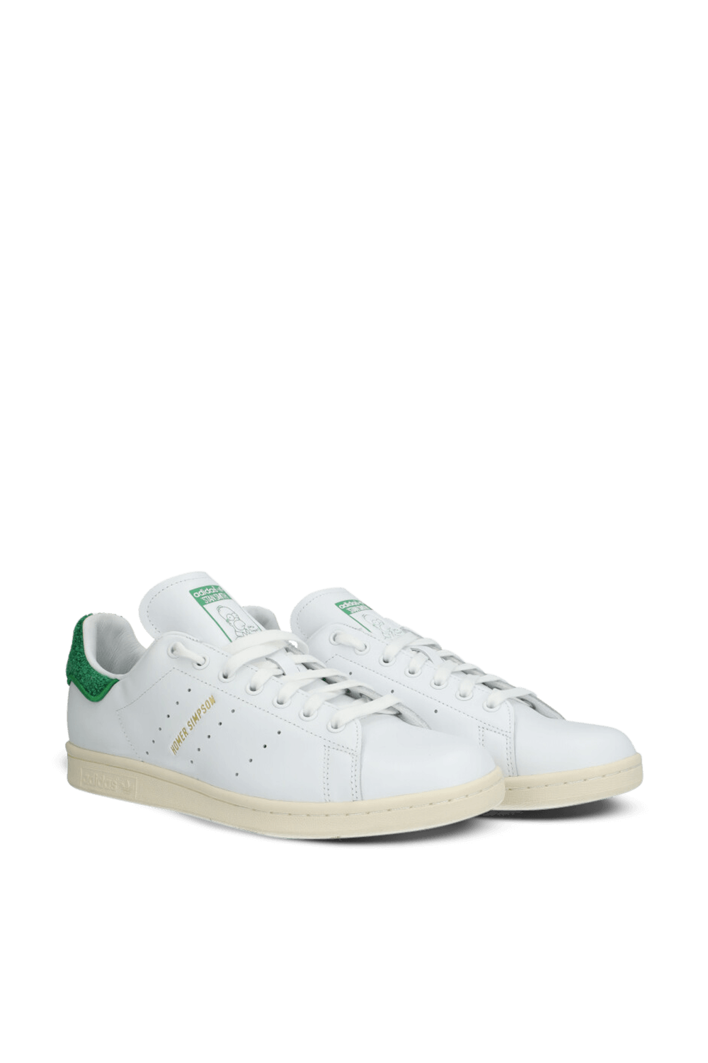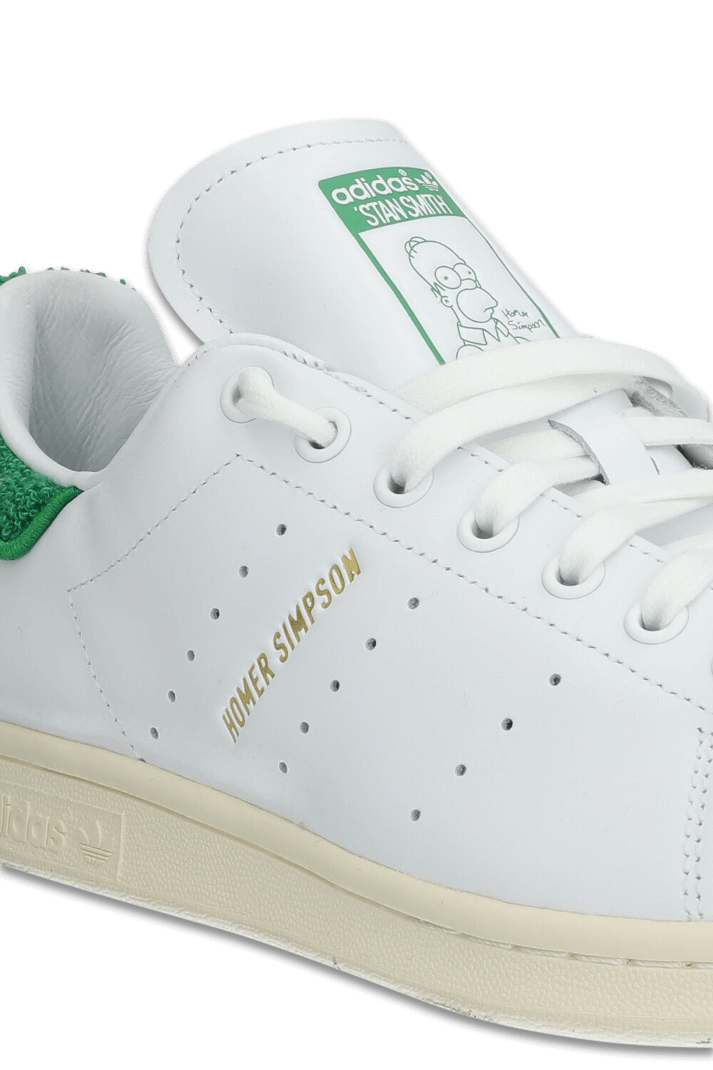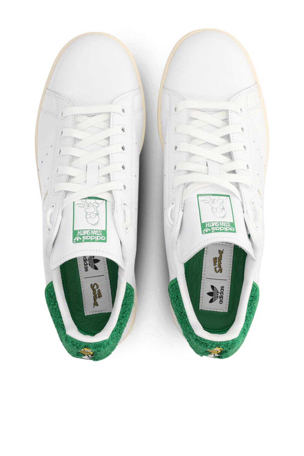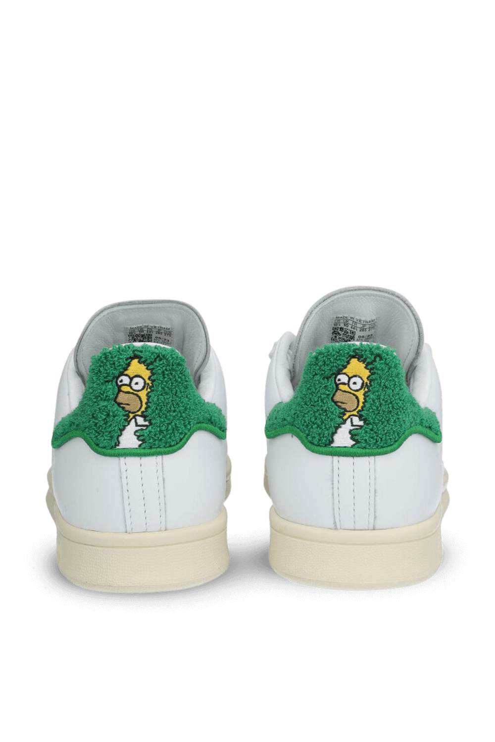 נעלי סניקרס ברכיסה נמוכה מדגם Stan Smith מתוך שיתוף הפעולה בין סדרת הטלוויזיה The Simpsons למותג Adidas. הנעליים עשויות עור בצבע לבן בשילוב טקסטיל בעקב הנעל במראה דשא עליו רקומה דמותו של הומר סימפסון מהסדרה האייקונית.