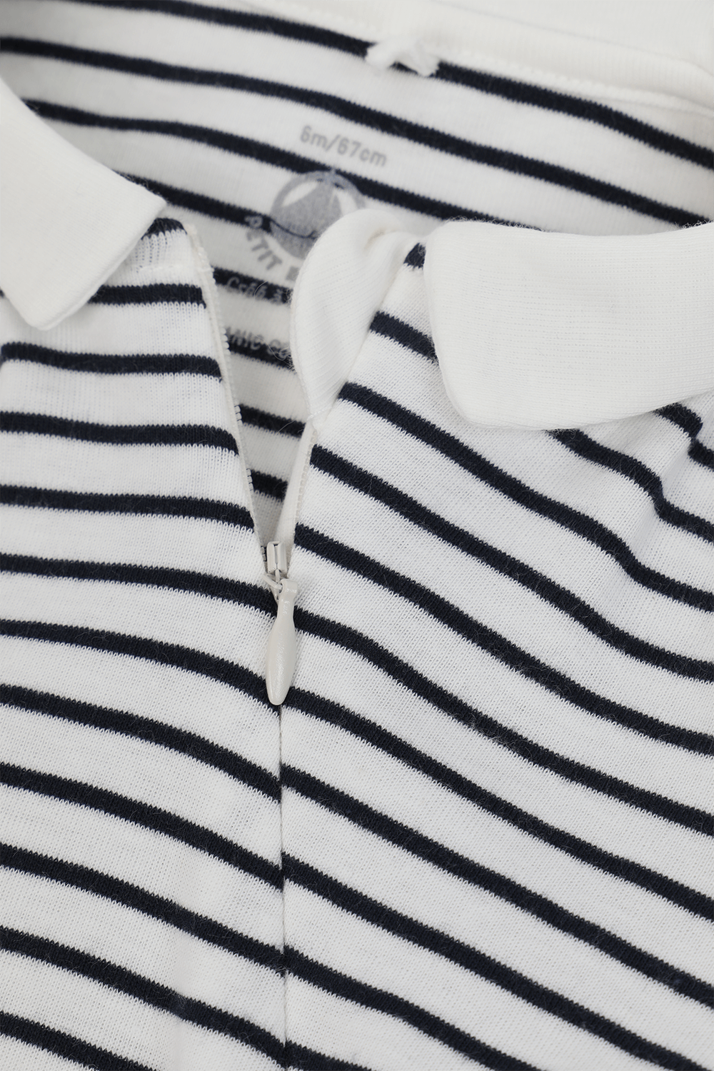אוברול ארוך מבית PETIT BATEAU. זהו דגם העשוי 100% כותנה משובחת ונעימה עם הדפס פסים אופקי בגווני שחור ולבן. לפריט סגירת תיקתקים המתחילה בצווארון וממשיכה לכל האורך להלבשה נוחה במיוחד. מדובר בפריט המשלב נוחות ואיכות עם סטייל פריזאי בלתי מתפשר.