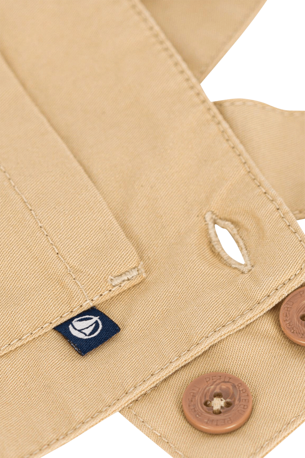 אוברול מבית Petit Bateau עם כיס קדמי, עשוי כותנה אורגנית בצבע חאקי עם כתפיות הנסגרות בשני כפתורים וניתנות להתאמה אישית. צידי האוברול אלסטיים וחלקו התחתון נסגר בכפתורי תיק תק נסתרים בעיצוב אלגנטי כמו שרק הצרפתים יודעים.