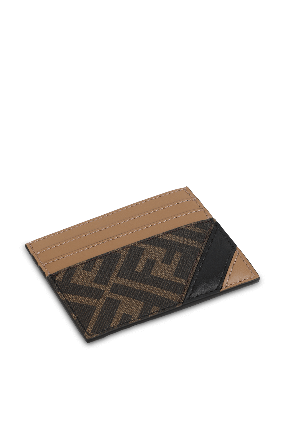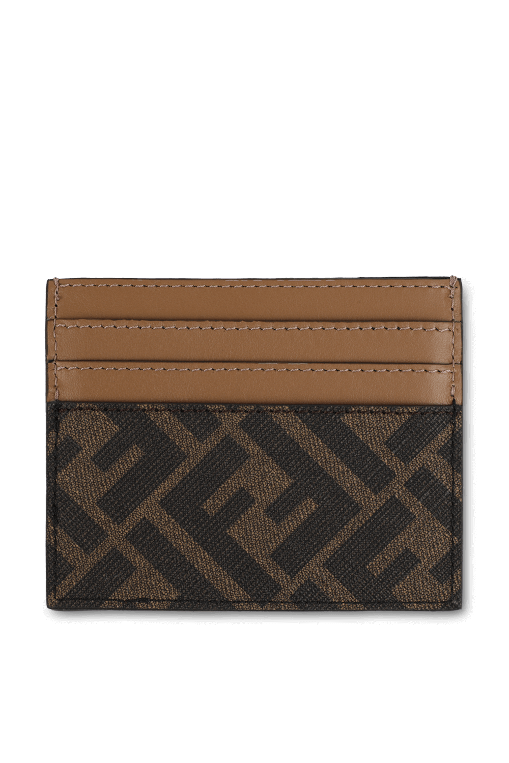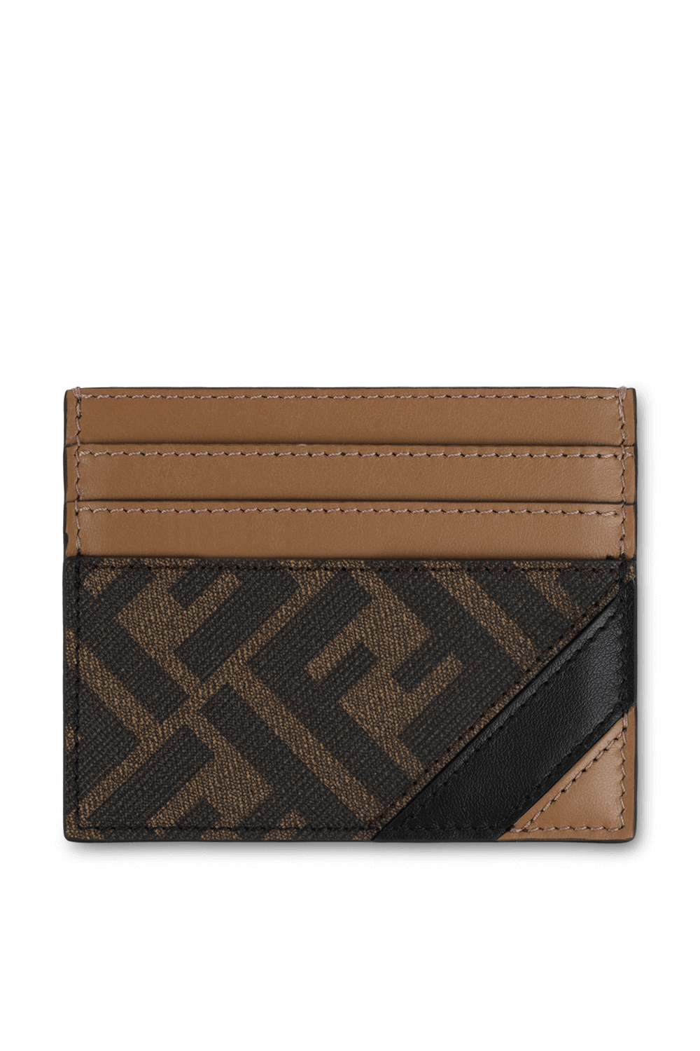 ארנק כרטיסים מבית אופנת העל היוקרתי Fendi. זהו דגם העשוי מתערובת כותנה משובחת בגווני חום עם רקמה מונוגרמית, לצד פסים אלכסוניים בגווני חום ושחור. לפריט צללית מלבנית עם חריצים ייעודיים לכרטיסים, כשעיצובו נתחתם בתפרים עדינים.