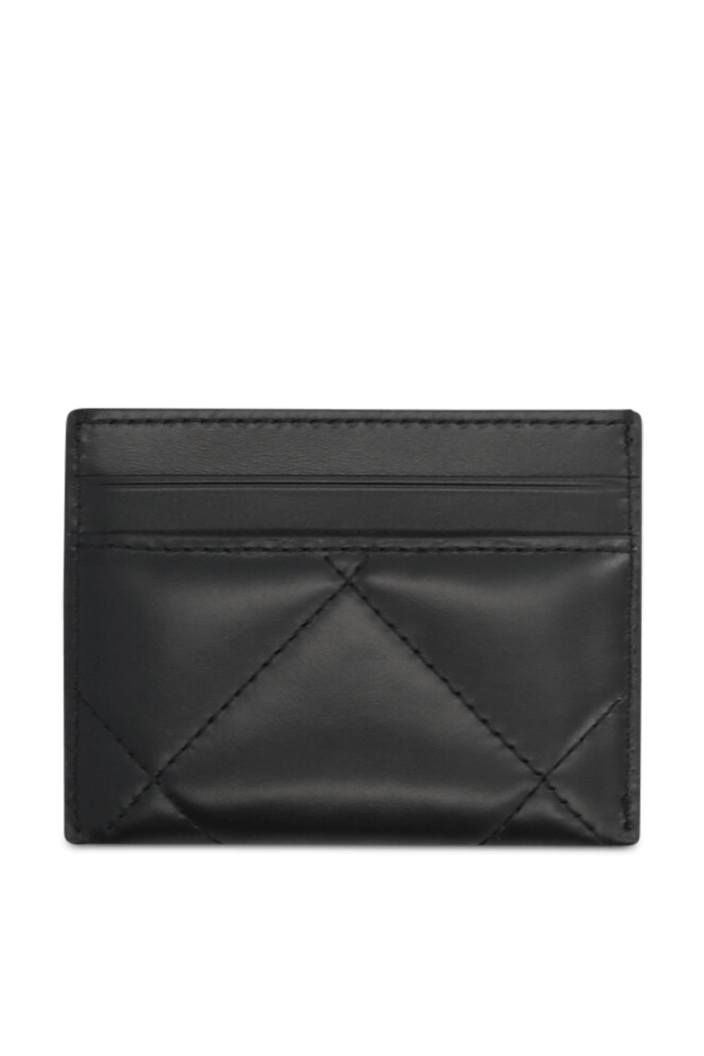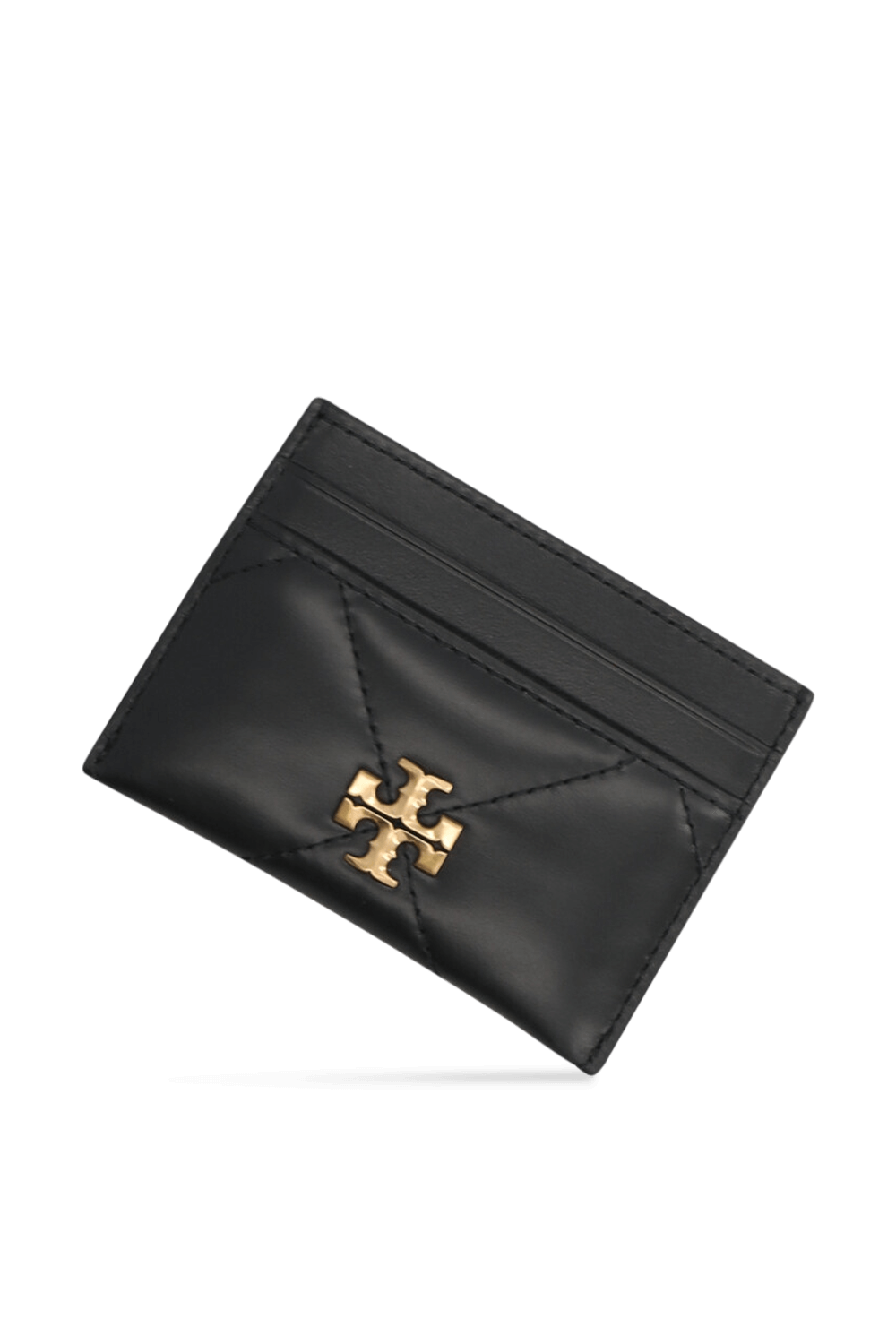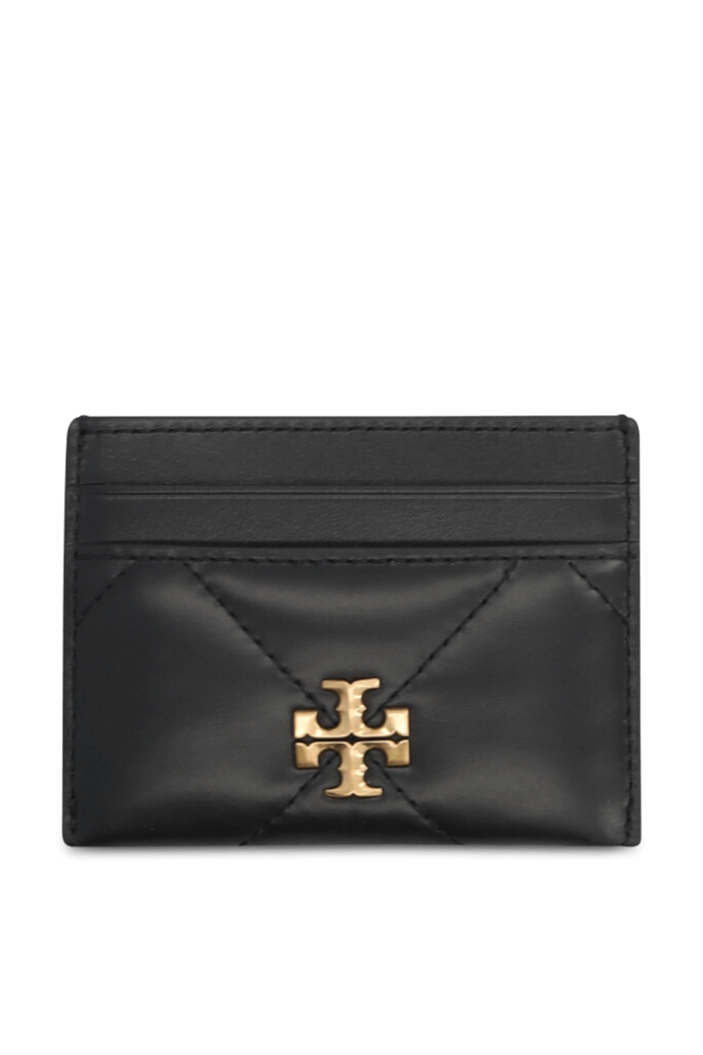 ארנק כרטיסים Kira Diamond מבית Tory Burch, עשוי עור בצבע שחור ובעיצוב תיפורי קווילט, בשילוב ארבעה חריצים לכרטיסים וכיס לקבלות.