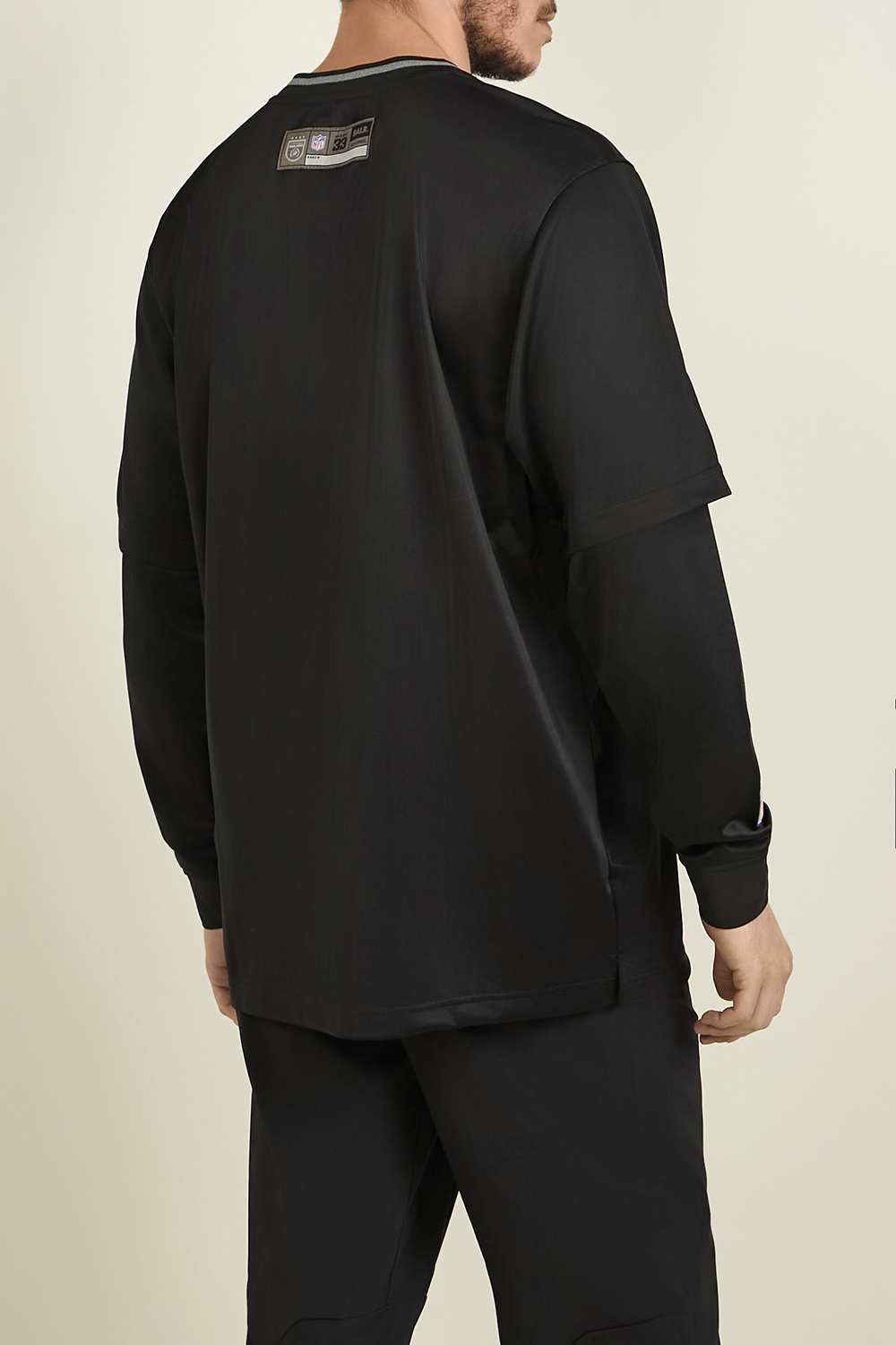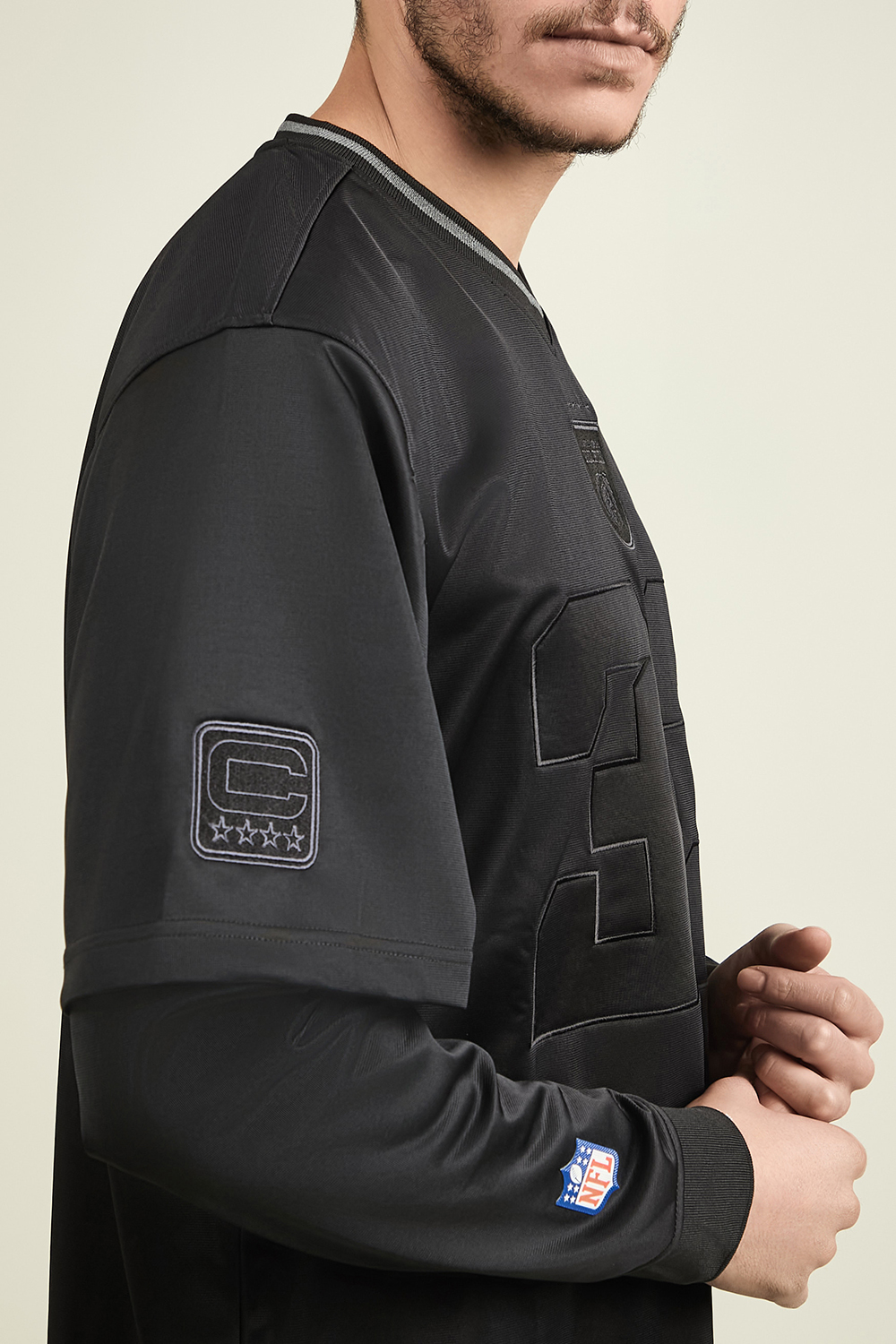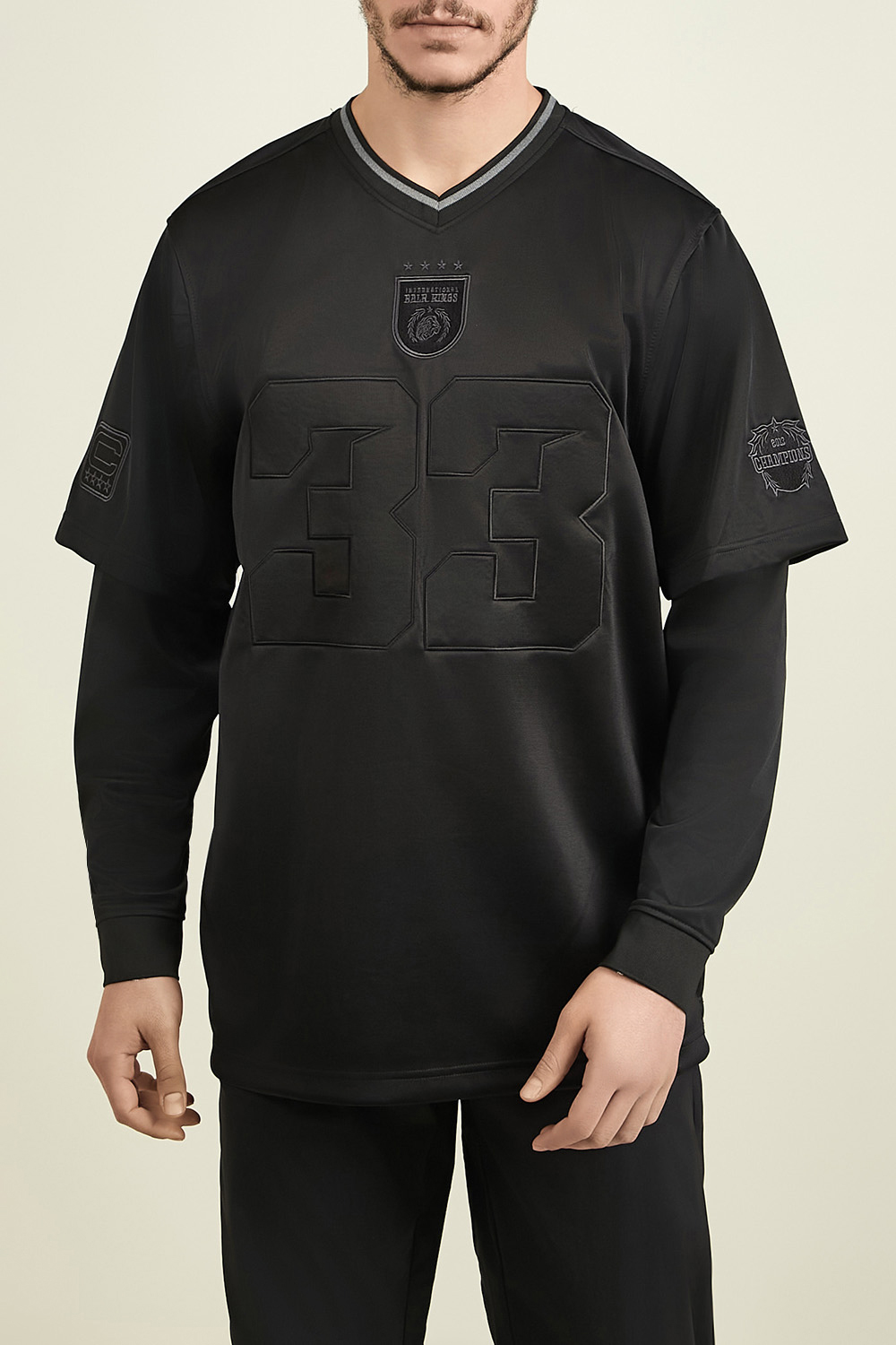 חולצת פוטבול במראה שכבות מתוך שיתוף הפעולה האקסקלוסיבי Balr X NFL, בין מותג היוקרה ההולנדי לליגת הפוטבול האמריקאית. החולצה במראה שכבות עשויה פוליאסטר בצבע שחור, בשילוב רקמת המספר 33 במרכז עם פאצ'ים של לוגו המותגים ובגזרה נינוחה.