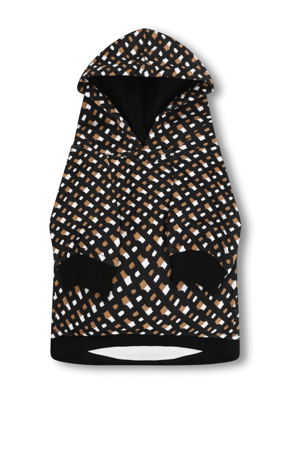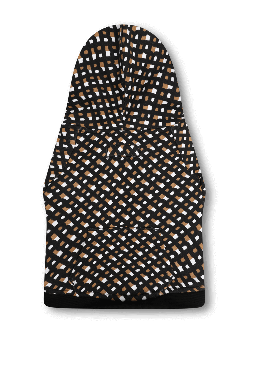 בית האופנה היוקרתי Boss משתף פעולה לראשונה עם מותג ההלבשה הפופלארי לחיות מחמד Kanine. זוהי קולקציה אקסקלוסיבית הכוללת בגדי לבוש, אביזרים ומשחקים ממותגים לגזעי כלבים שונים. סווטשירט קפוצ`ון ייחודי לכלבים העשוי מתערובת כותנה רכה ונעימה בעיצוב מונוגרמי בגווני שחור, חום ולבן, לצד פתח המיועד לחיבור החגורה. הפריט מאובזר בכובע קפוצ`ון קלאסי, לצד שרוולים קצרים וכיס קנגורו בעוד שאמרות בסריגת ריב מהדקים את הפריט על הגוף. מידות XS מתאים לכלבים באורך 23-27 ס"מ, חזה 33-37 ס"מ, צוואר 26-29 ס"מ S מתאים לכלבים באורך 28-32 ס"מ, חזה 38-42 ס"מ, צוואר 31-34 ס"מ
