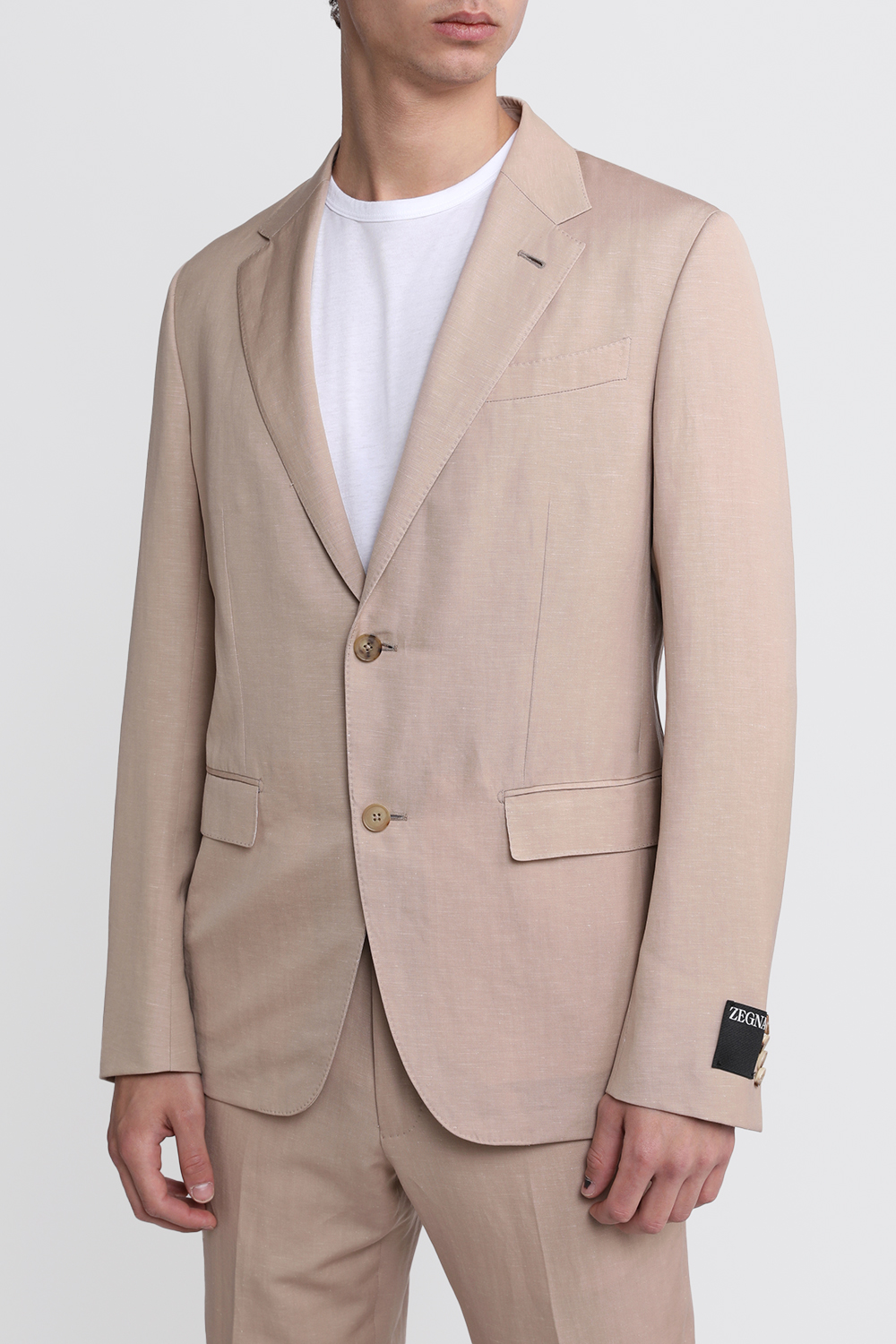 בלייזר מחויט מבית Zegna. הפריט עשוי מכותנה נעימה בצבע בז' בגזרת סלים מוקפדת עם כיסים. ניתן לשלב עם מכנסיים מחויטים תואמים להשלמת החליפה.