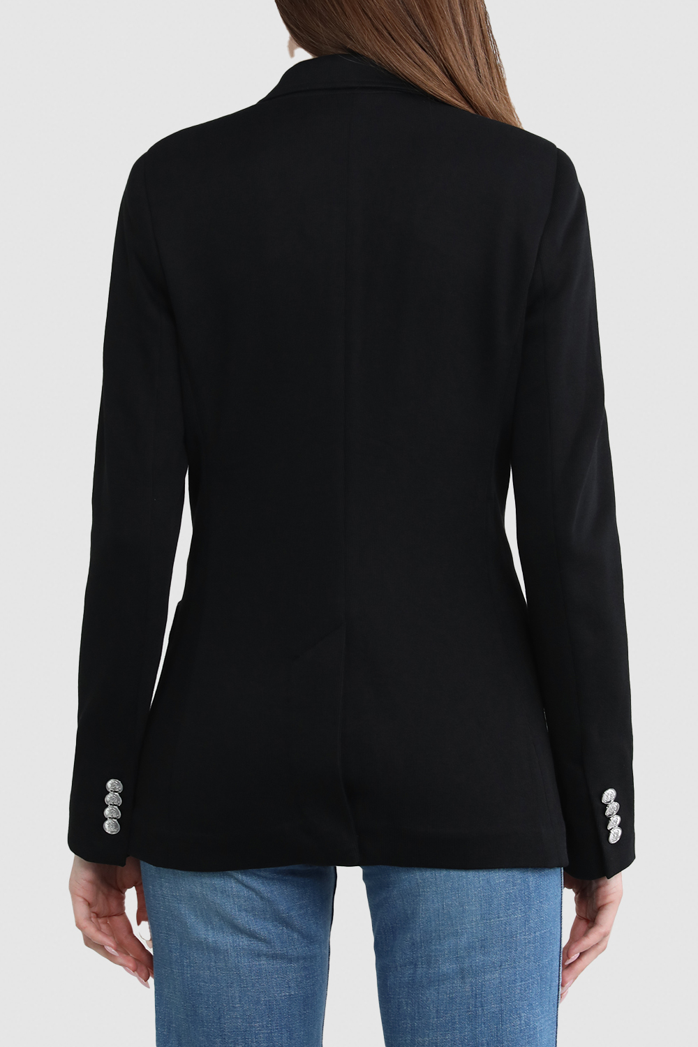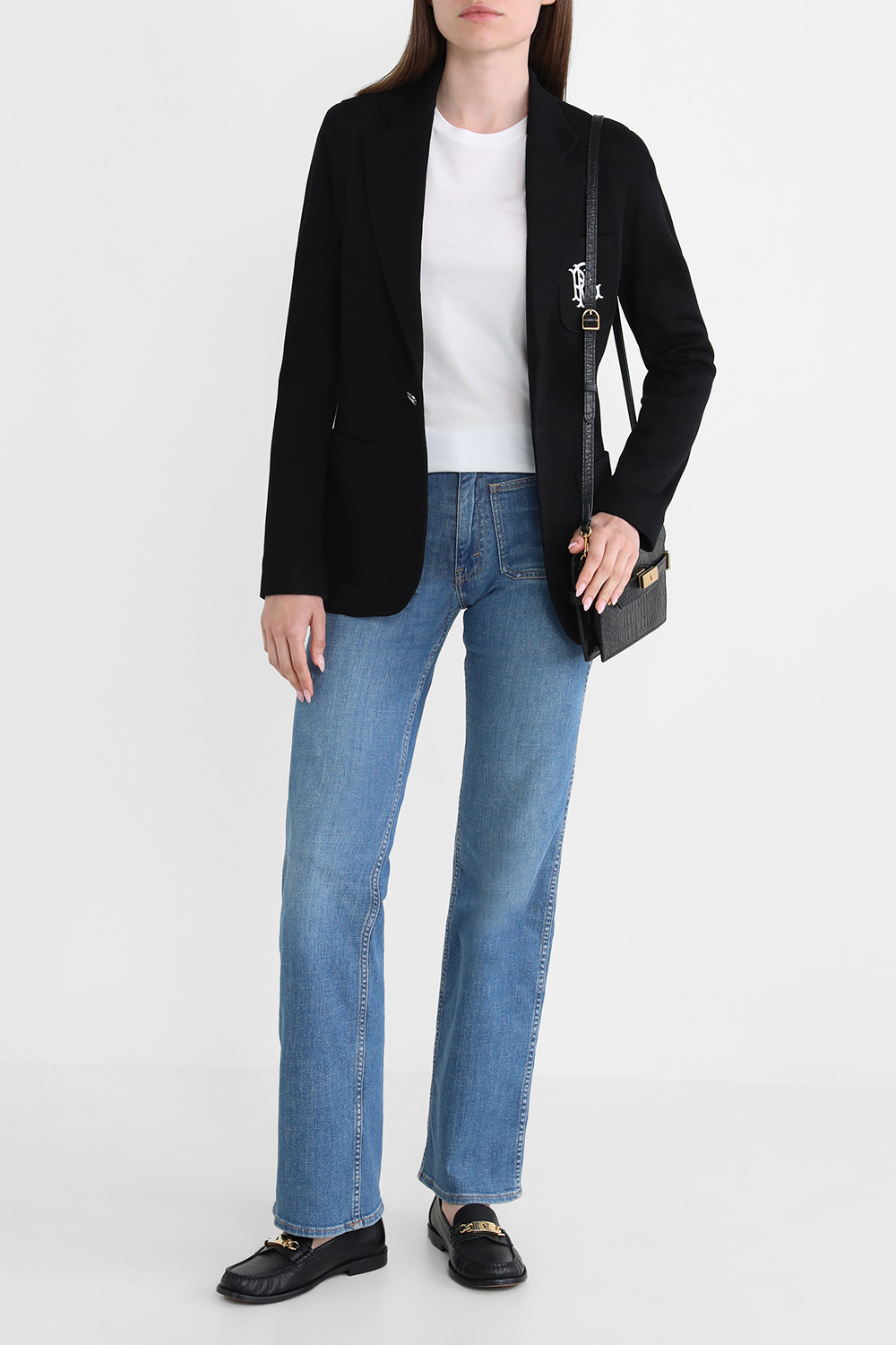 בלייזר מחויט מבית Polo Ralph Lauren, עשוי תערובת כותנה וויסקוזה בצבע שחור עם רקמה לבנה וחפתים. למראה אולד סקול אפשר להתאים עם חולצה מכופתרת לבנה מתחת.