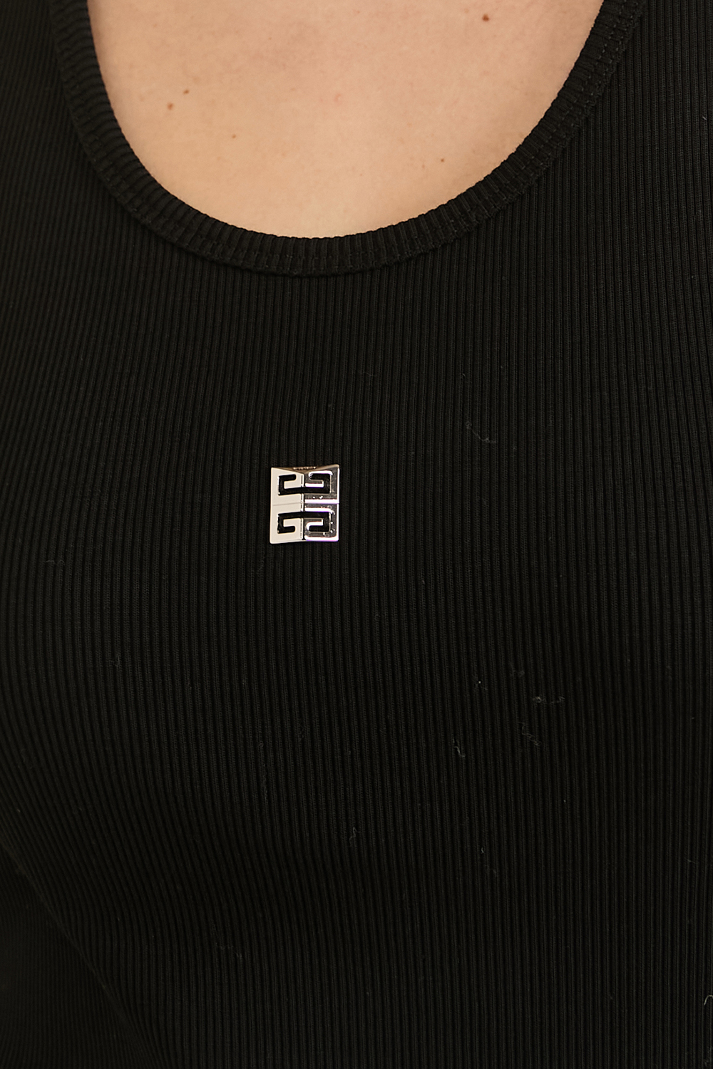גופיית ריב מבית Givenchy, עשויה כותנה ואלסטן בצבע שחור עם לוגו מטאלי בחזית.
