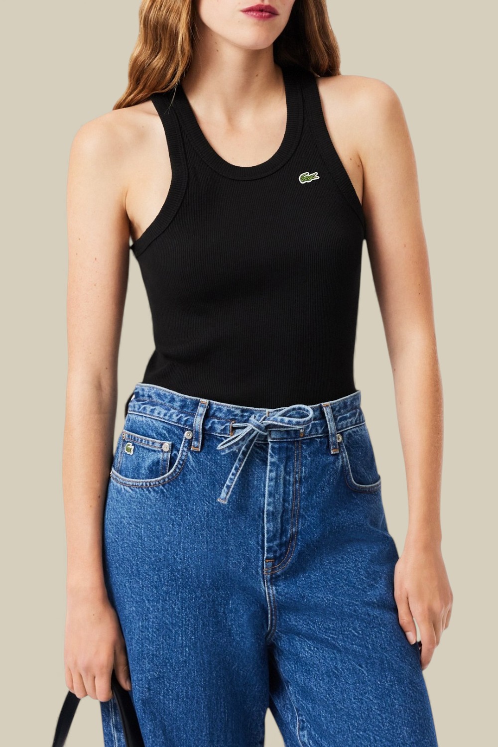 גופיית ריב קלאסית מבית Lacoste, עשויה כותנה אורגנית בצבע שחור.
