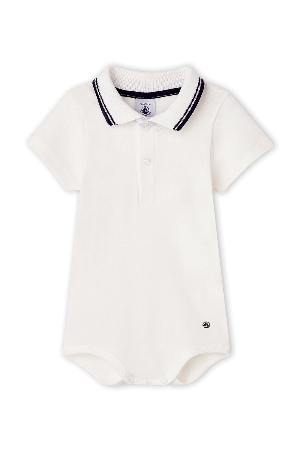 המותג הצרפתי המשובח והשיקי הגיע סוף סוף לארץ עם קולקציה חדשה לפעוטות לתינוקות ולילדים. המותג נודע בזכות עיצוב מלא מחשבה הכולל הקפדה על לבישה קלה ונוחה עמידה בכביסות מסביב לשעון ושיק צרפתי נאיבי שמגלם במדויק את מה ששמיש ונחוץ ביותר לקטנטנים שלנו. זהו בגד גוף מתוק לתינוקות העשוי 100% כותנה משובחת ורכה בגוון לבן. לדגם זה שרוולים קצרים וסגירת תיק-תק בחזיתו כמו גם צווארון פולו עם גימורים קונטרסטיים. אין ספק שמדובר בפריט נפלא בשביל הרך הנולד.