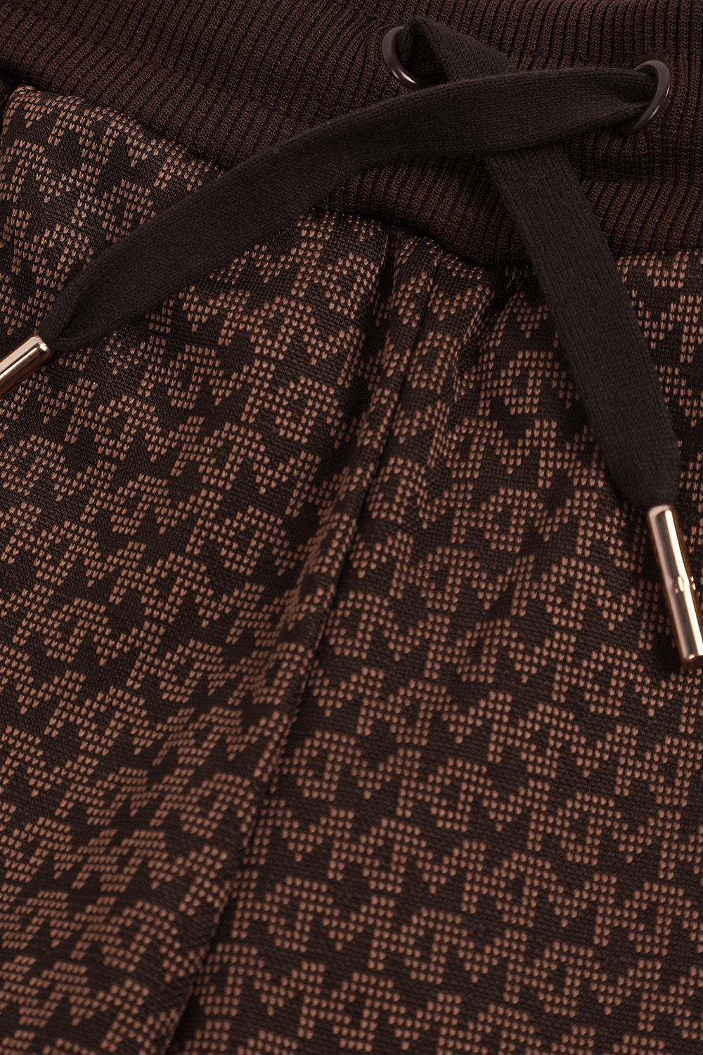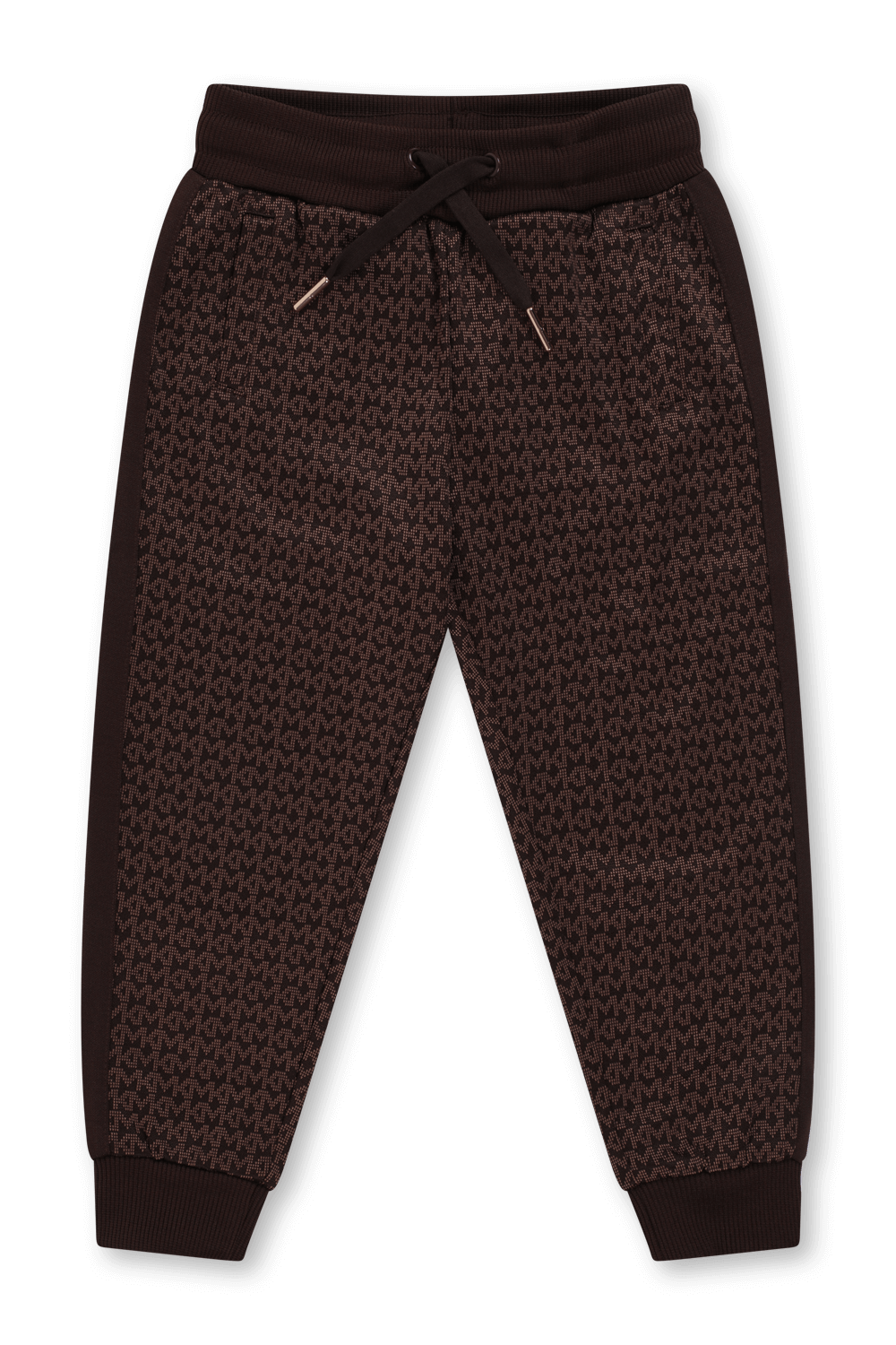 מכנסי טרנינג ארוכים מבית Michael Kors Kids עם הדפס מונוגרמי לכל האורך בגווני חום. לפריט גזרה ישרה ונינוחה עם קו מותניים גמיש בעל שרוכים לנוחות והתאמה מקסימלית.