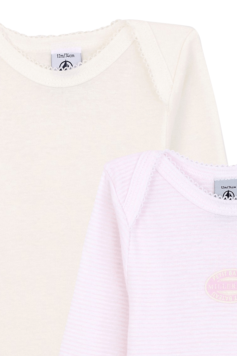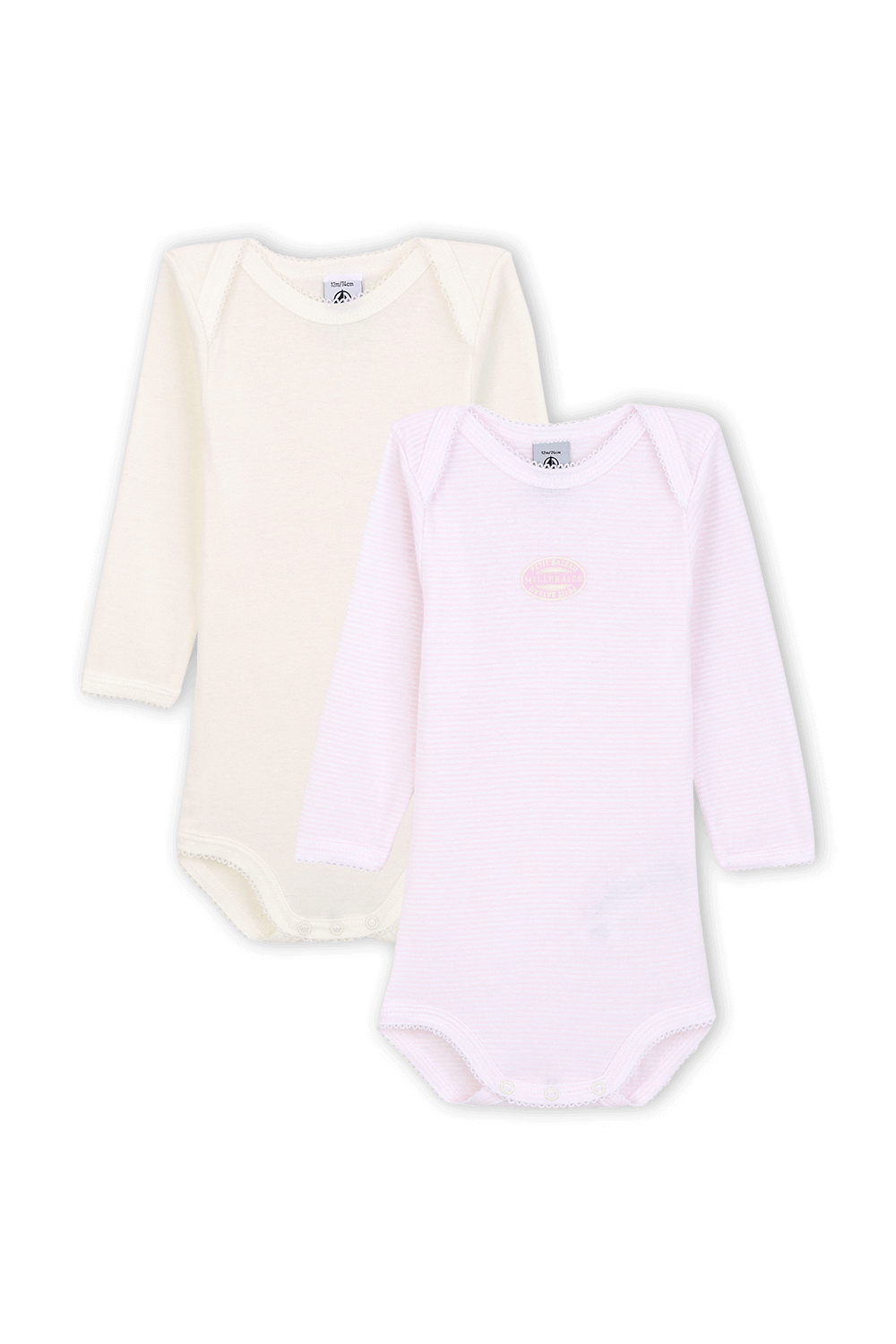 גילאי 3-36 חודשים זוג בגדי גוף עם שרוולים ארוכים בורוד ולבן
