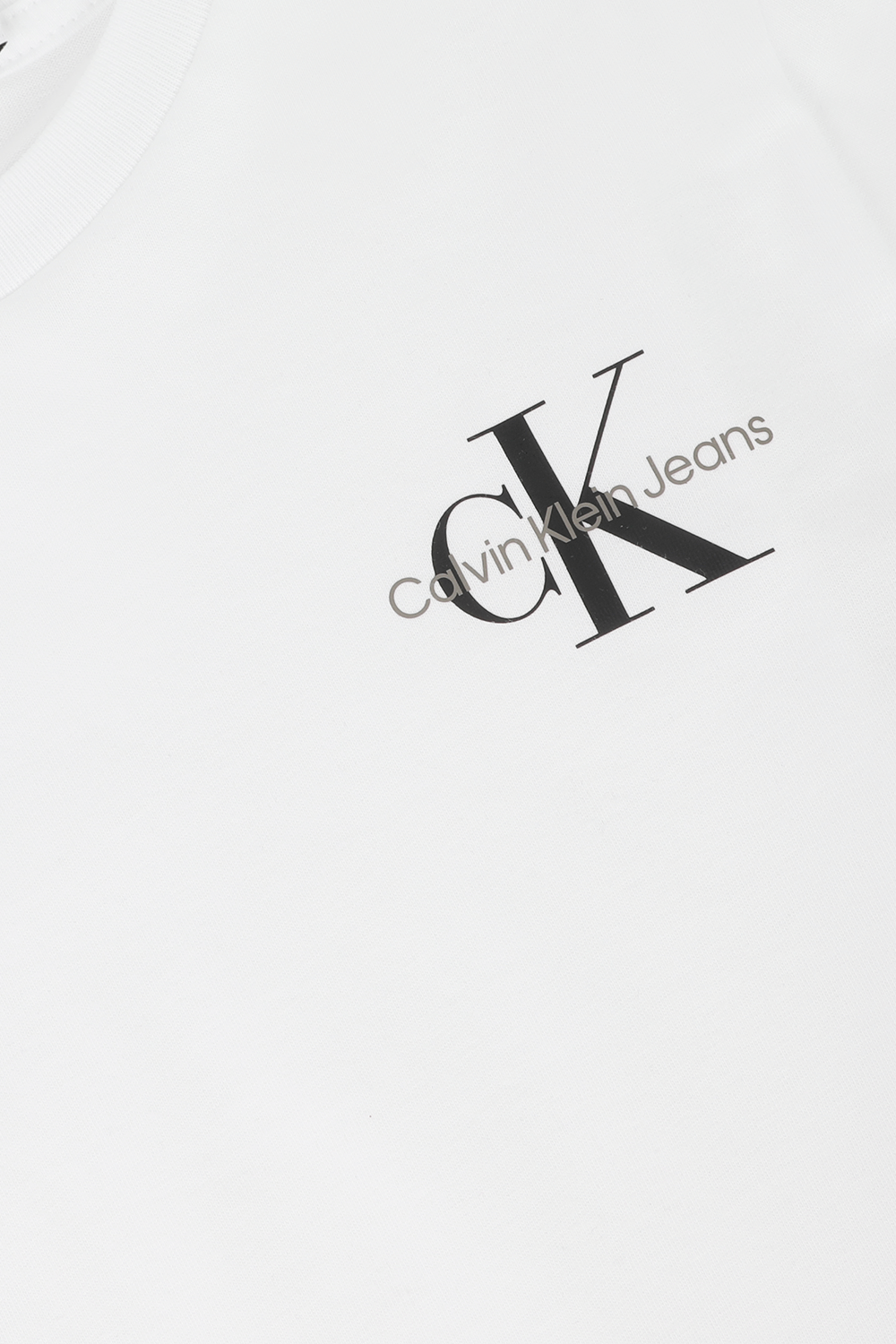 חולצת טי מתוך קולקציית הילדים של קלווין קליין האמריקאי. זהו דגם העשוי כותנה איכותית בגוון לבן. לפריט גזרה ישרה עם צווארון מעוגל כאשר לוגו מונוגרמי בגוון שחור מעטר את צד החזה וחותם את העיצוב האייקוני והעל זמני.