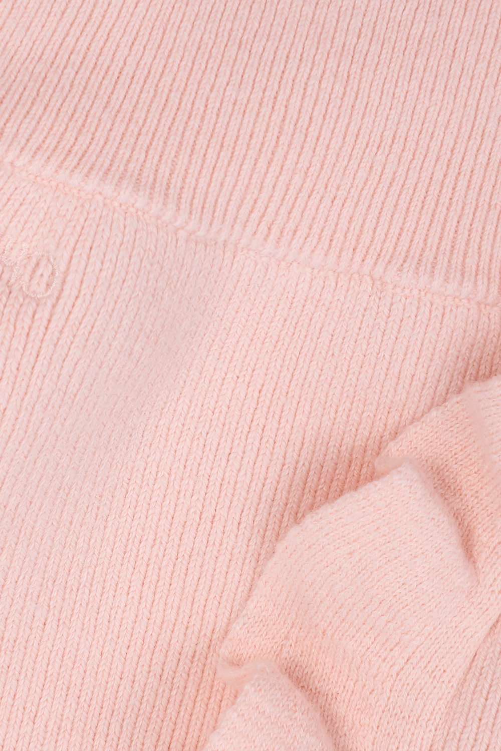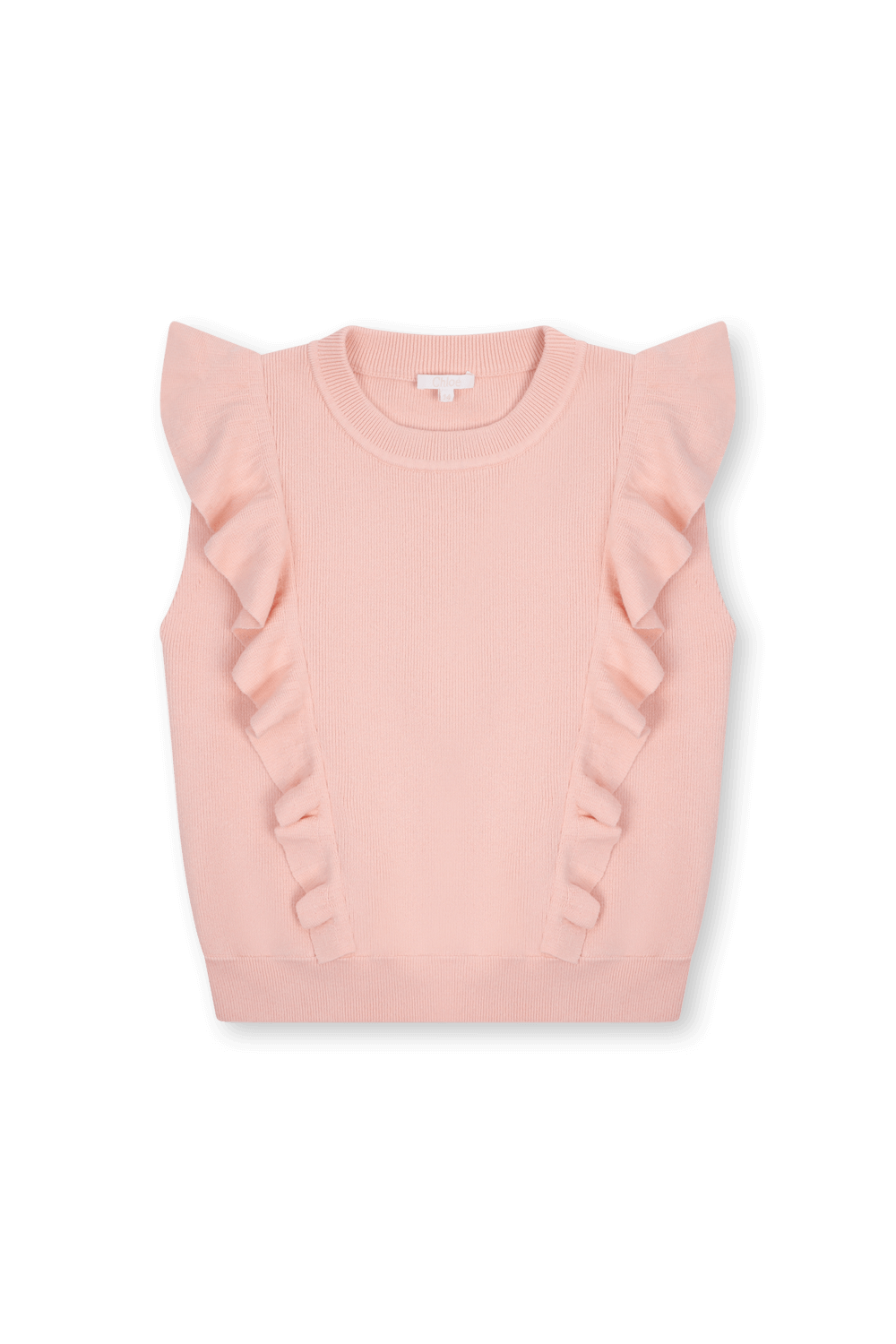 גופיה משגעת בעיצוב בית האופנה הצרפתי Chloe. החולצה סרוגה מתערובת עדינה של כותנה וצמר בגוון ורוד המונחת בעדכנות על בגוף ומציגה גזרה מוקפדת ומחמיאה. הגופיה מתהדרת בכתפיות רחבות ובשילוב עיטורי מלמלה לאורך החזית.