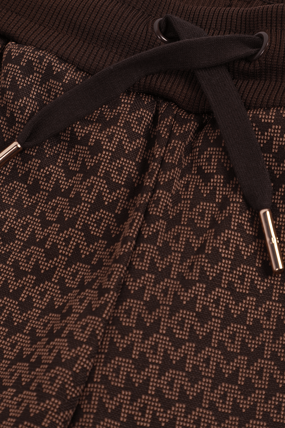 מכנסי טרנינג ארוכים מבית Michaek Kors Kids עם הדפס מונוגרמי לכל האורך בגווני חום. לפריט גזרה ישרה ונינוחה עם קו מותניים גמיש בעל שרוכים לנוחות והתאמה מקסימלית.