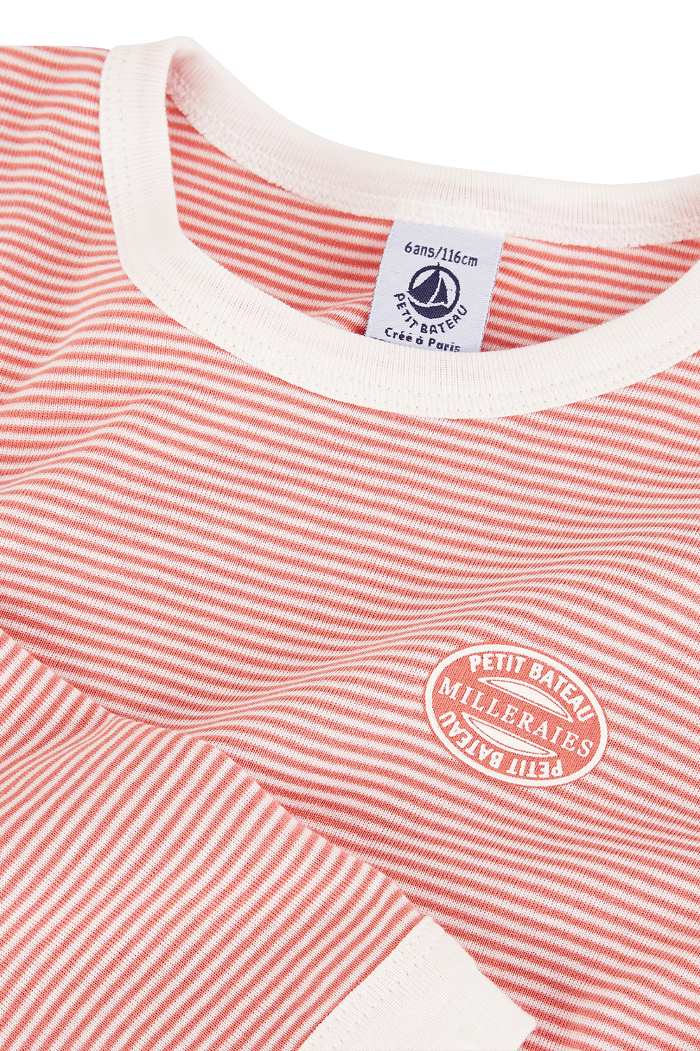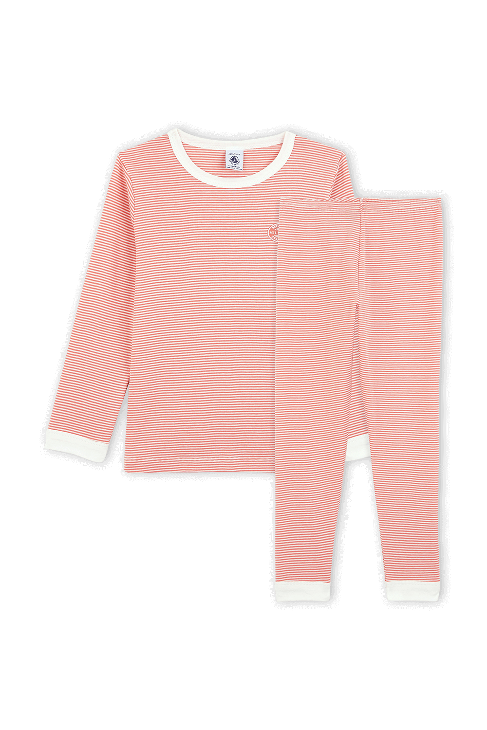 סט פיג`מה ארוך וסופר מתוק מבית מותג הילדים היוקרתי PETIT BATEAU. זהו דגם העשוי 100% כותנה איכותית בדוגמת פסים בגווני ורוד ולבן עם צצווארון עגול ואמרות בגוון לבן. סמל המותג מוטבע בצד החזית וחותם את סגנונה המתוק של הפיג`מה.