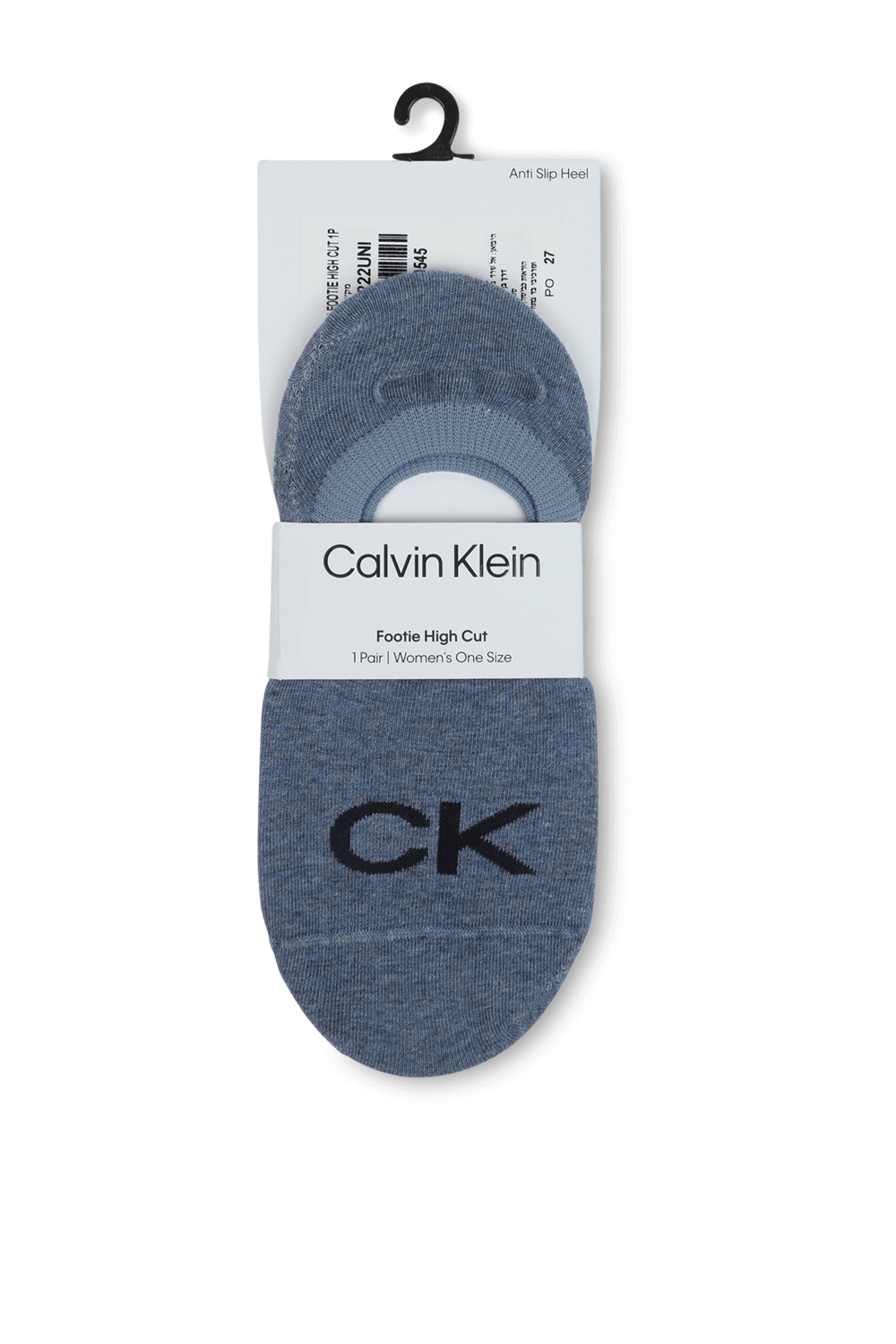 זוג גרביים מבית קלווין קליין האמריקאי. זהו דגם העשוי כותנה איכותית בגוון כחול עם ראשי תיבות המותג רקומים עליו. לפריט גזרת פוטי היי קאט שמטרתן להישאר חבויות תחת הנעליים. מדובר בזוג שיקי המלשב נוחות ואיכות עם מקסימום סטייל.