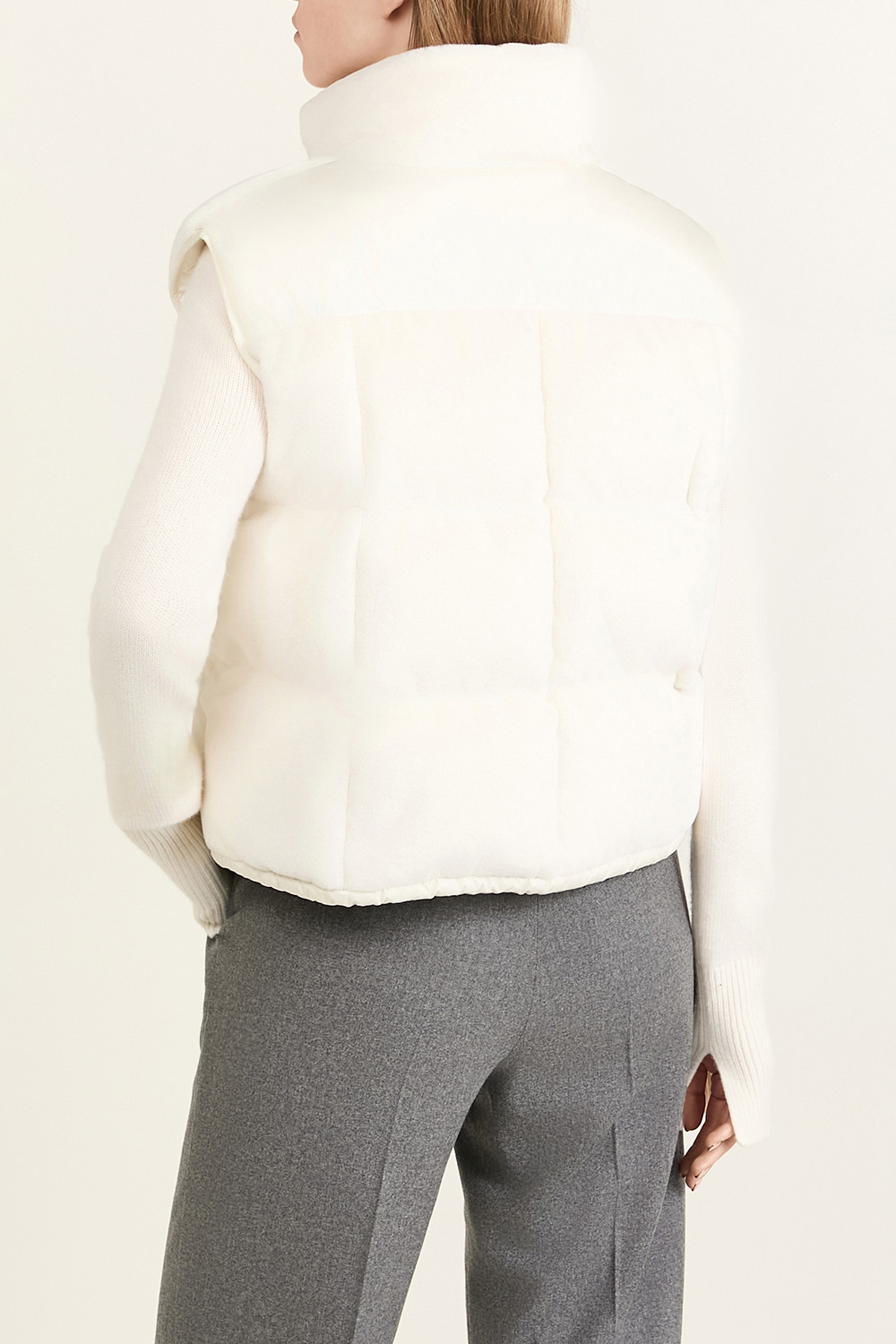 וסט פוך Arques מבית Moncler המעוצב בהשראת אופנת שנות ה-60. הוא עשוי ניילון בצבע לבן בשילוב פליז מצידו הקדמי והאחורי. יש לו צווארון גבוה וזוג כיסי קווילט קדמיים. זוג שרוכים בחלקו התחתון מאפשרים הצמדה של הווסט לגוף והוא נסגר ברוכסן. נוצות המילוי עומדות בפרוטוקול הייצור DIST, תוך התחייבות לשרשרת ייצור הוגנת ודאגה לרווחת בעלי החיים.