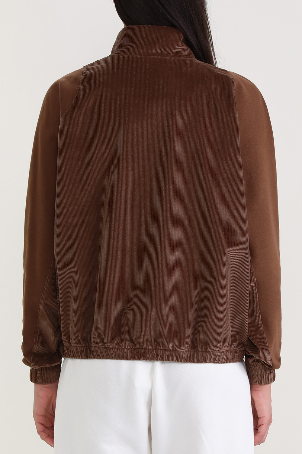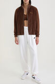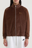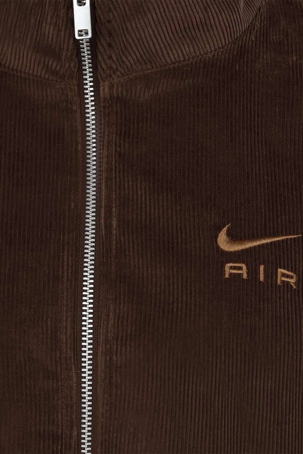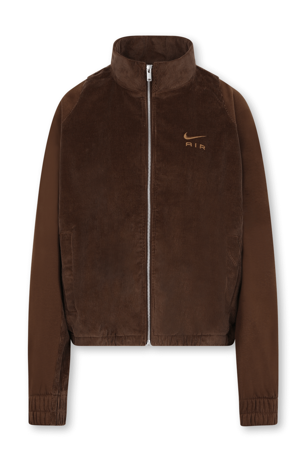 "ז`קט סופר שיקי של ענקית הספורט Nike העשוי בד קורדרוי עדכני בגוון חום. לפריט גזרה ישרה ונינוחה עם סגירה מרוכסנת לכל האורך וצווארון גבוה כאשר לוגו המותג מעטר את צד החזית.