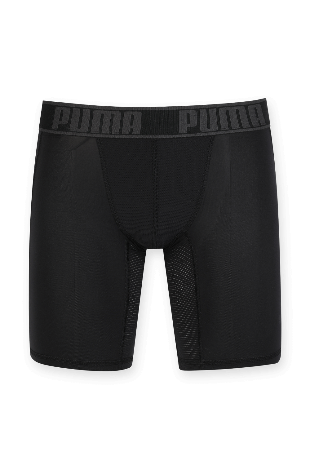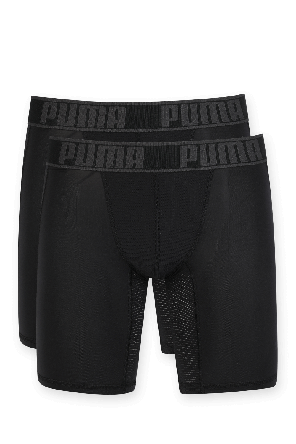 זוג תחתונים בעיצוב ענקית הספורת והאופנה פומה. דגם בגזרת בוקסר ארוך העשוי מבד איכותי ונעים בגוון שחור בשילוב גומי ממותג בגוון לבן קונטרסטי באזור המותניים אשר ישמורו אותך רענן ואופנתי.