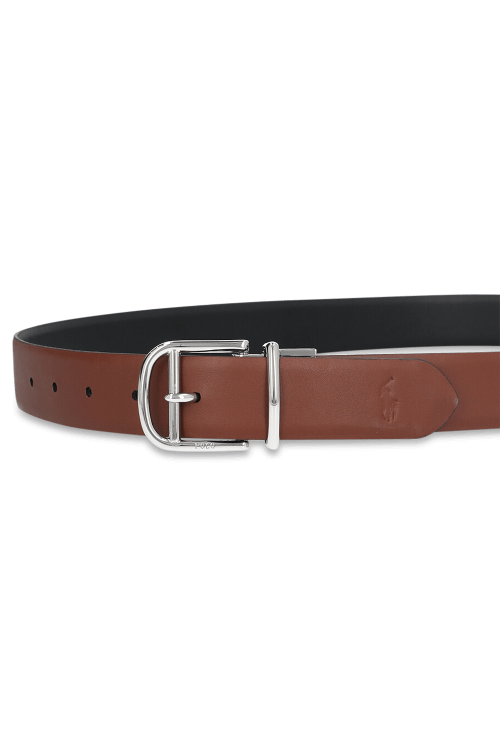 חגורה דו צדדית מבית Polo Ralph Lauren, עשויה עור כשצד אחד בצבע חום והצד השני בצבע שחור בשילוב לוגו המותג בסיומת.