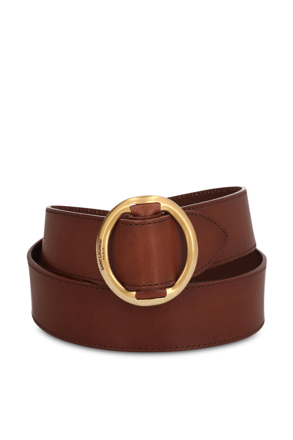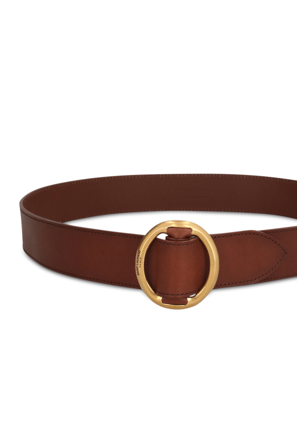 חגורה מבית Saint Laurent עשויה עור בצבע חום עם אבזם אובלי זהוב.