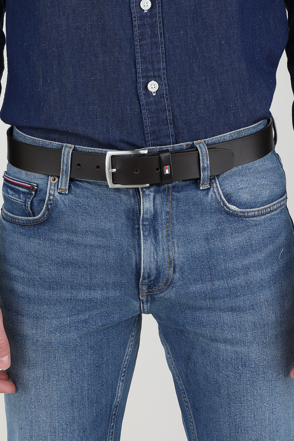 חגורת עור קלאסית דגם Denton מבית Tommy Hilfiger. החגורה בגוון חום, מעוטרת בלוגו הדגל האהוב ובעלת אבזם כסוף, ועשויה מעור אורגני ממקור מפוקח.