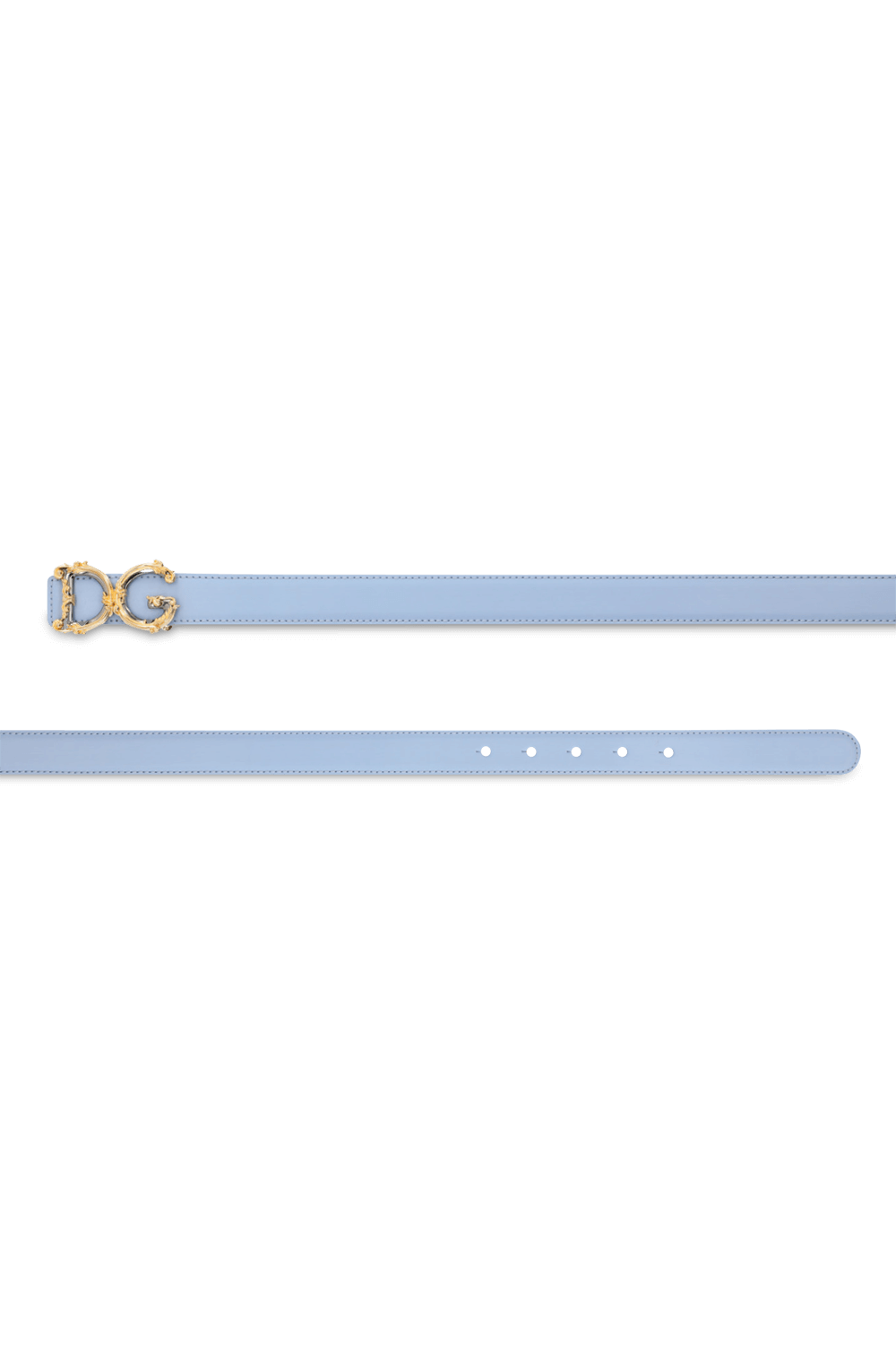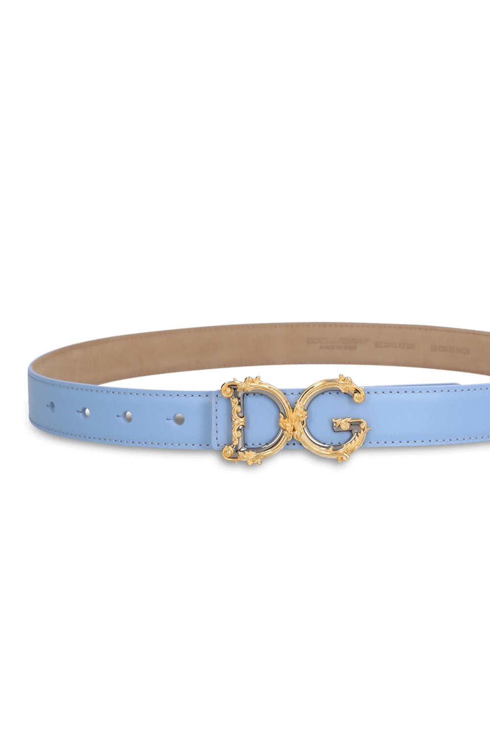חגורה מבית Dolce&Gabbana, תוצרת איטליה, עשויה עור בצבע כחול בשילוב אבזם לוגו המותג בצבע מטאלי זהוב.