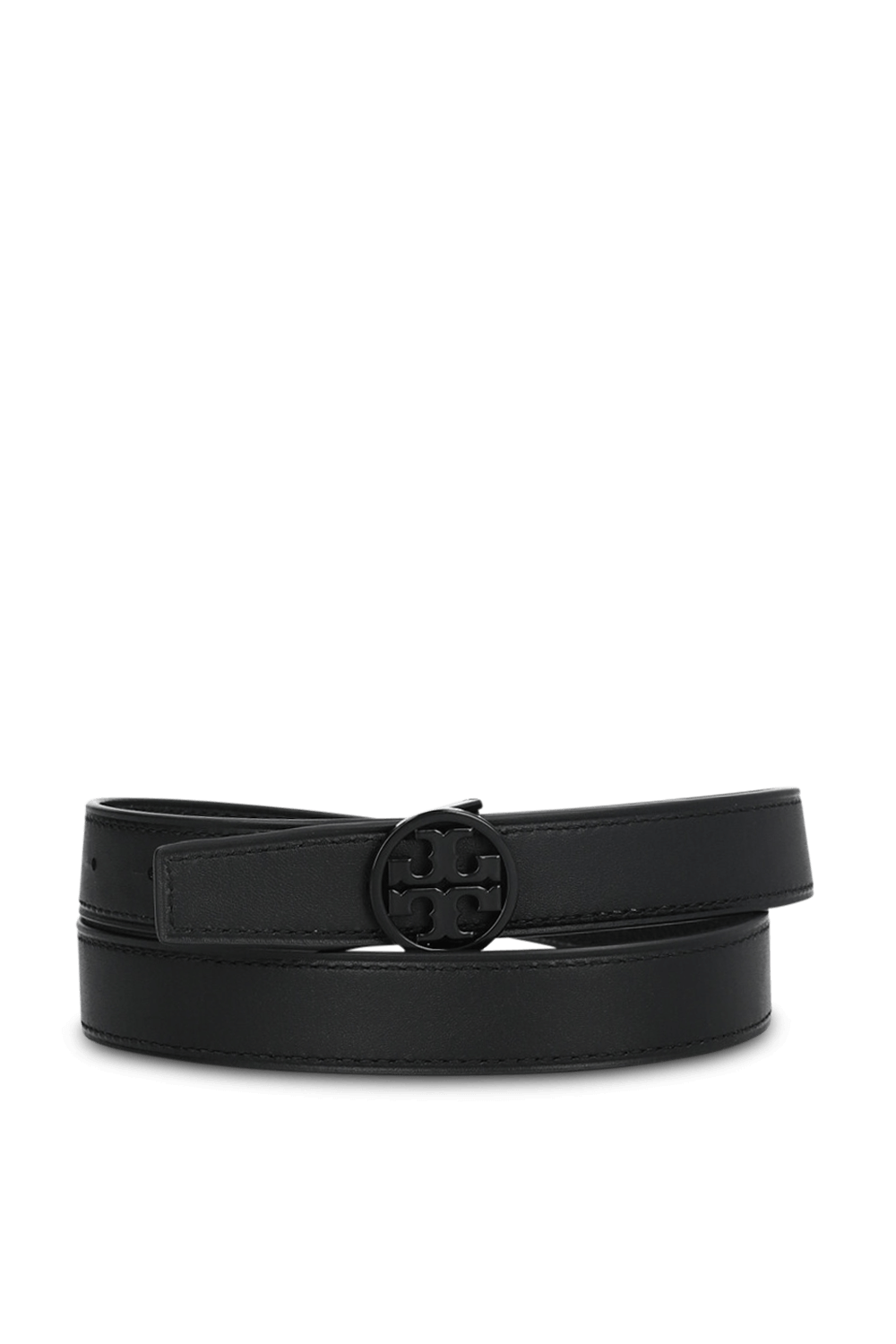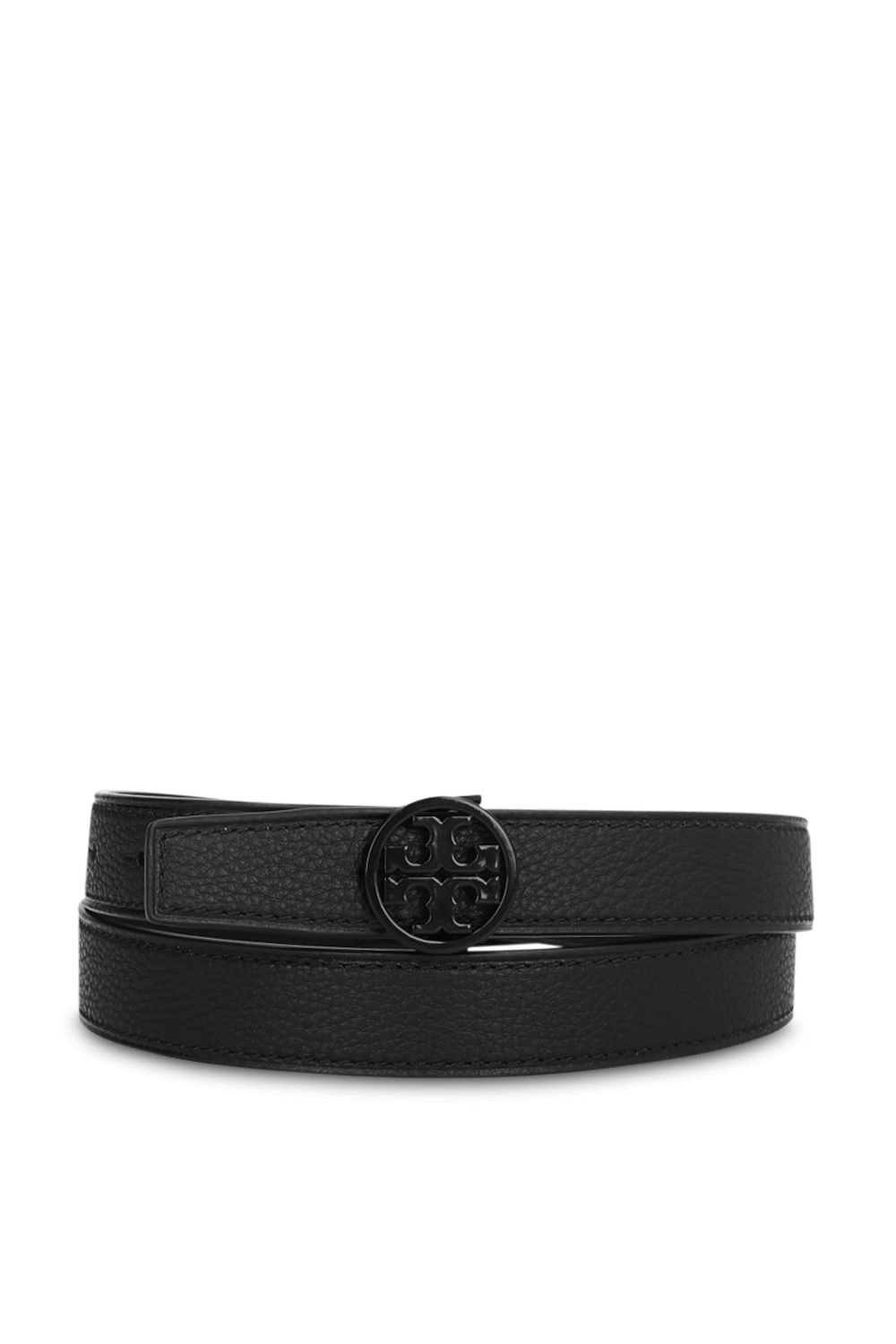 חגורה מבית Tory Burch, עשויה עור בצבע שחור בשילוב הטבעת לוגו המותג במרכז.