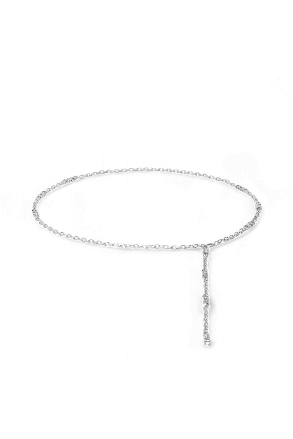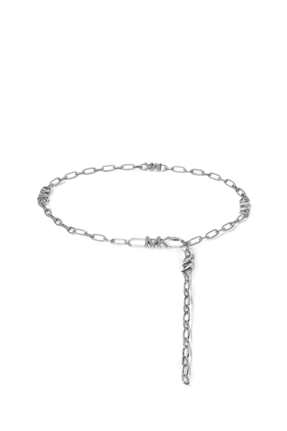 חגורת שרשרת בגודל סמול מבית Michael Kors, עשויה שרשרת כסופה המשלבת בחוליות את לוגו הMK. סוגר החגורה יכול להכנס לכל אחת מלולאות השרשרת וכך החגורה ניתנת להתאמת כל גודל בקלות