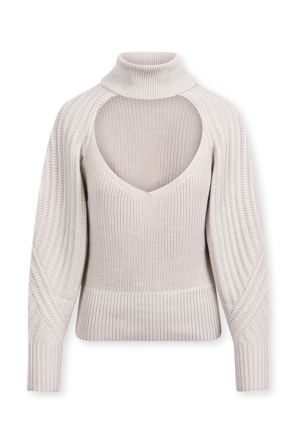 חולצה בעיצוב בית האופנה IRO העשויה 100% צמר משובח בגוון בז`. לפריט גזרה ישרה ונינוחה עם שרוולים מעט תפוחים וקאט אאוט במרכז לטאץ` טרנדי ונחשק במיוחד.
