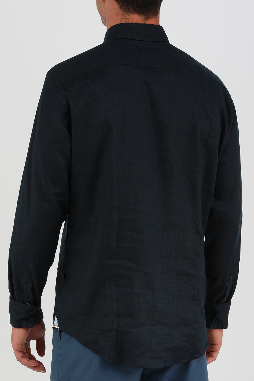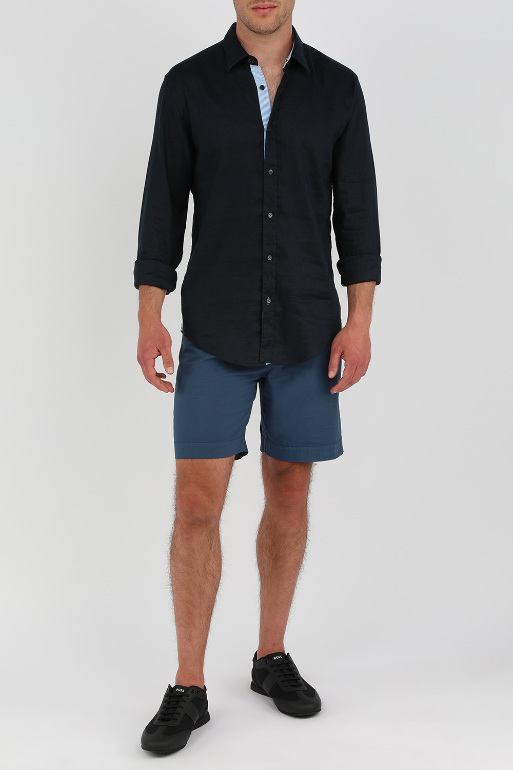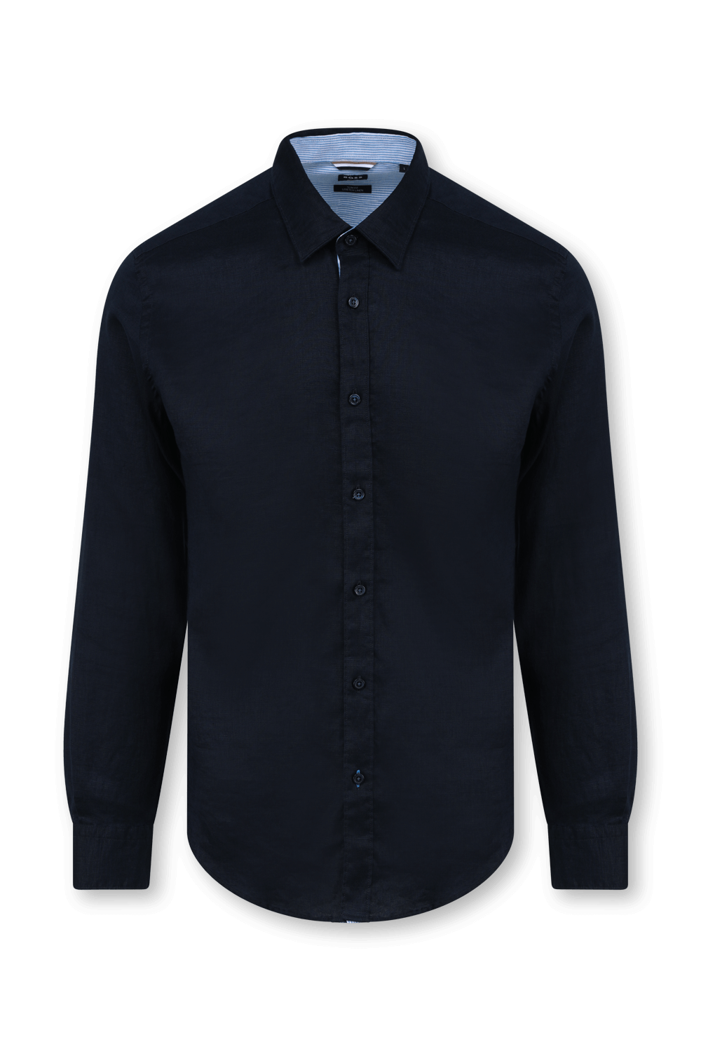 חולצה מכופתרת מבית הוגו בוס. זהו דגם העשוי מתערובת פשתן איכותית בגוון שחור. לפריט גזרה ישרה ומחויטת קלאסית עם סגירת כפתורים לכל האורך. מדובר בפיס בייסיק אך סופר אלגנטי שיתאים למגוון רחב של מערכות לבוש.