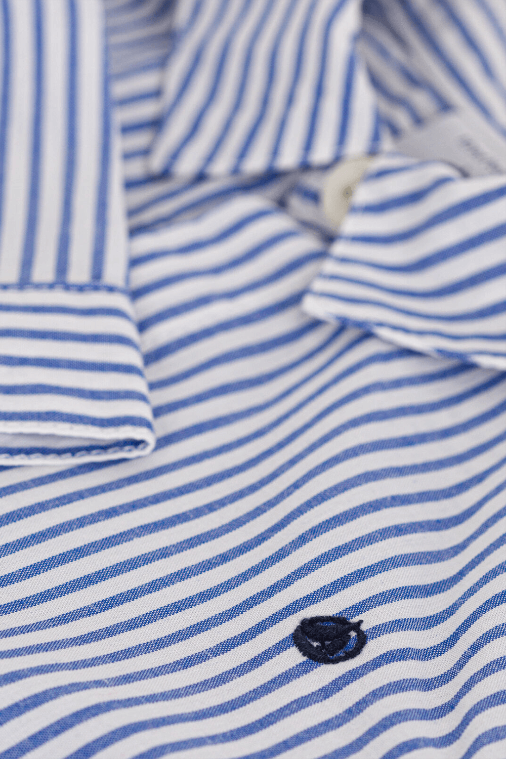 חולצה מכופתרת ארוכה מבית Petit Bateau, עשויה כותנת פופלין בהדפס פסים כחול ולבן עם רקמת לוגו בחזה וצווארון מחודד.