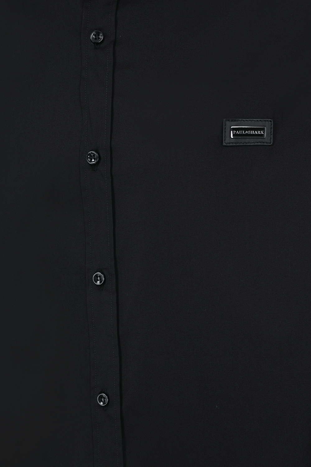 "חולצה מכופתרת מבית האופנה Paul&Shark, העשויה כותנה איכותית וגמישה בגוון שחור. חולצה זו מציגה גזרה קלאסית וישרה בעלת צווארון משולשים ושרוולים ארוכים, ולה רכיסת כפתורים חזיתית ולוגו פאץ` מובלט הרקום בצדי החזה."
