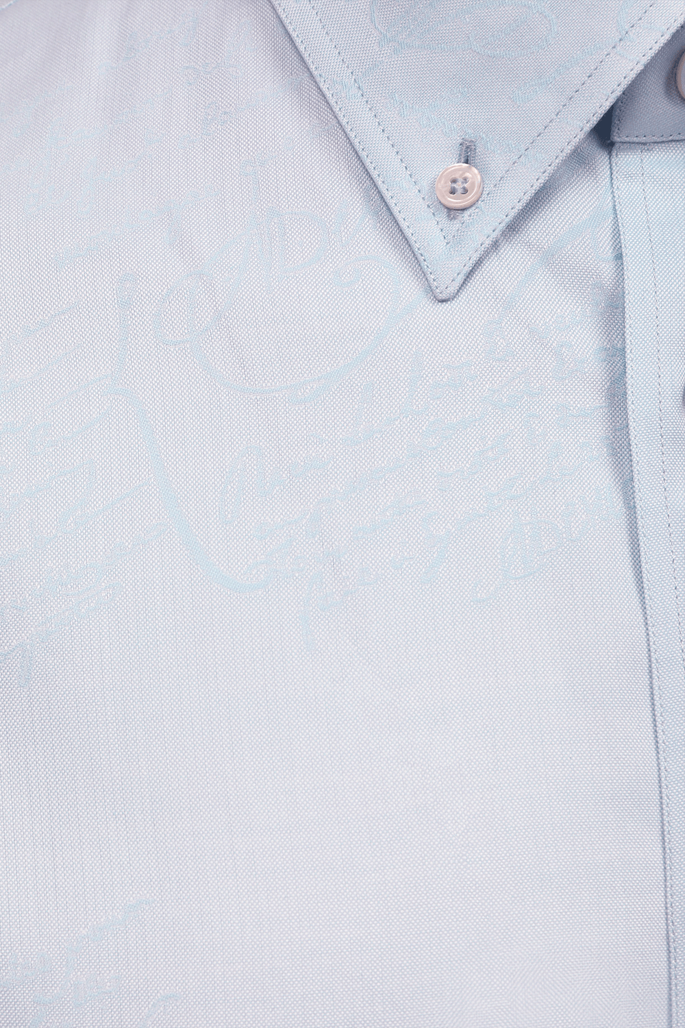 חולצה מכופתרת ארוכה מבית Berluti היוקרתי, העשויה 100% כותנה איכותית בגוון תכלת עם עיטור קליגרפי רקום בכל צידיה בסגנון טון-על-טון. לפריט גזרה ישרה ונינוחה עם צאוורון משולשים, חפתים מכופתרים וכפתורי רכיסה לאורך החזית בגוון פנינה.