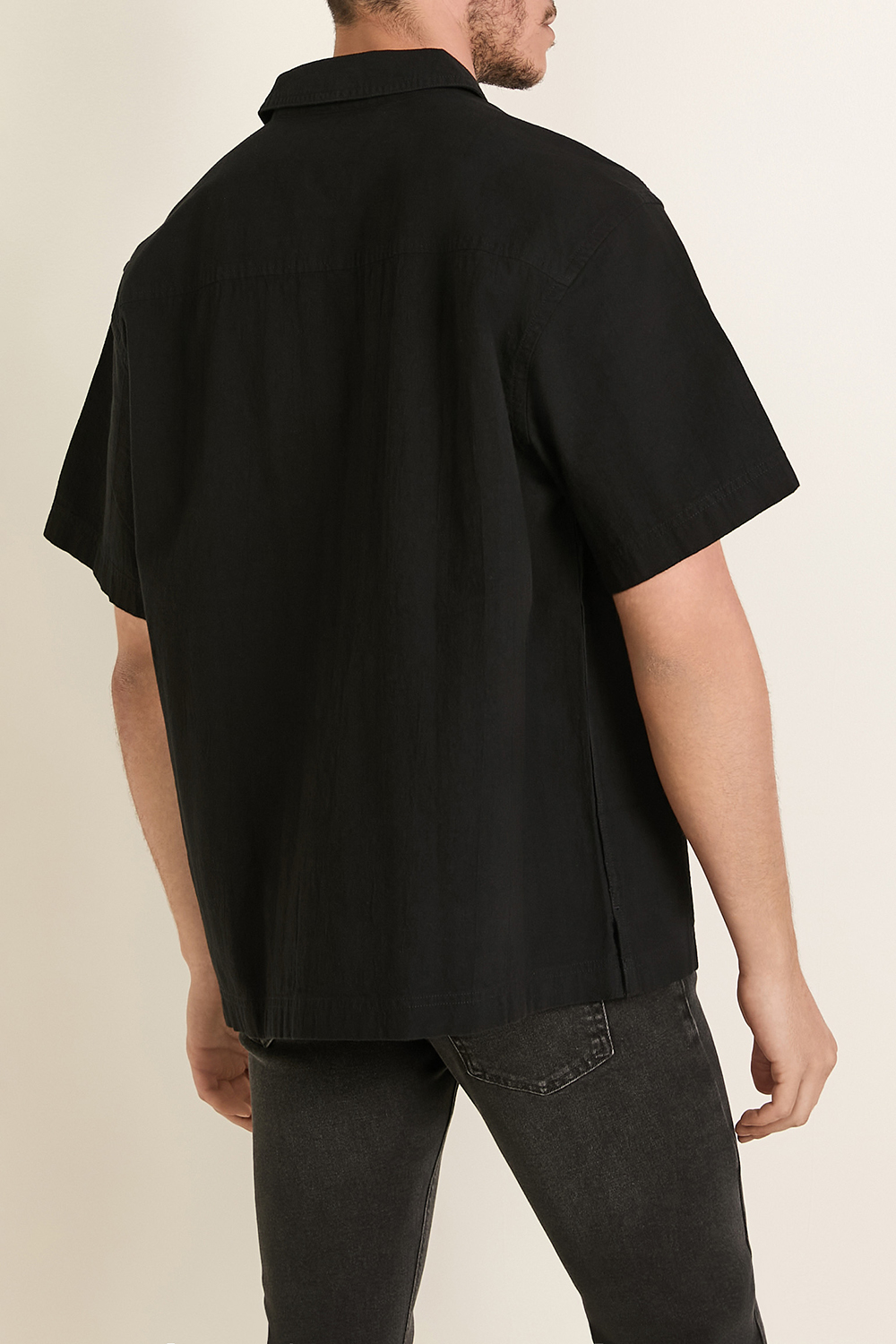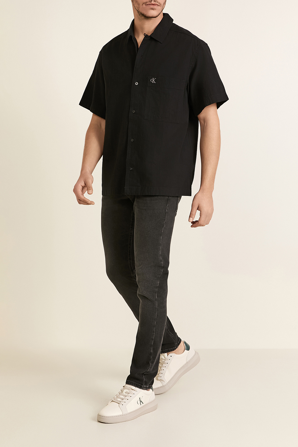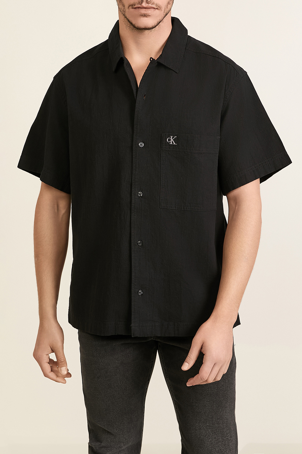 חולצה מכופתרת קצרה מבית Calvin Klein, עשויה כותנה בצבע שחור בשילוב כיס חזה.