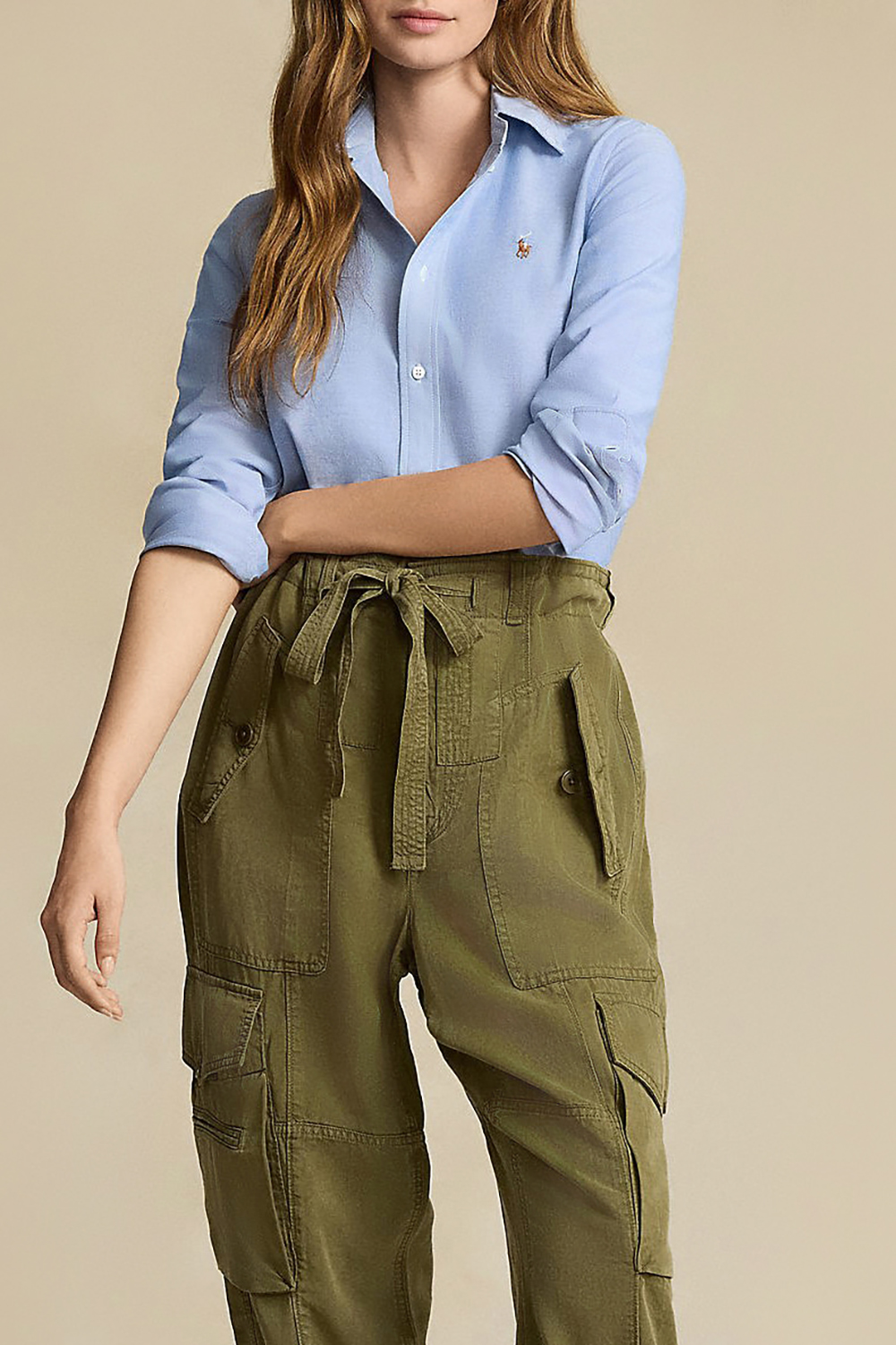 חולצה מכופתרת מבית Polo Ralph Lauren, עשויה תערובת כותנת פיקה ואלסטן בצבע כחול בהיר עם רקמת לוגו המותג בצד החזה.