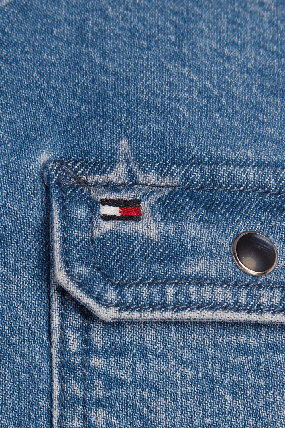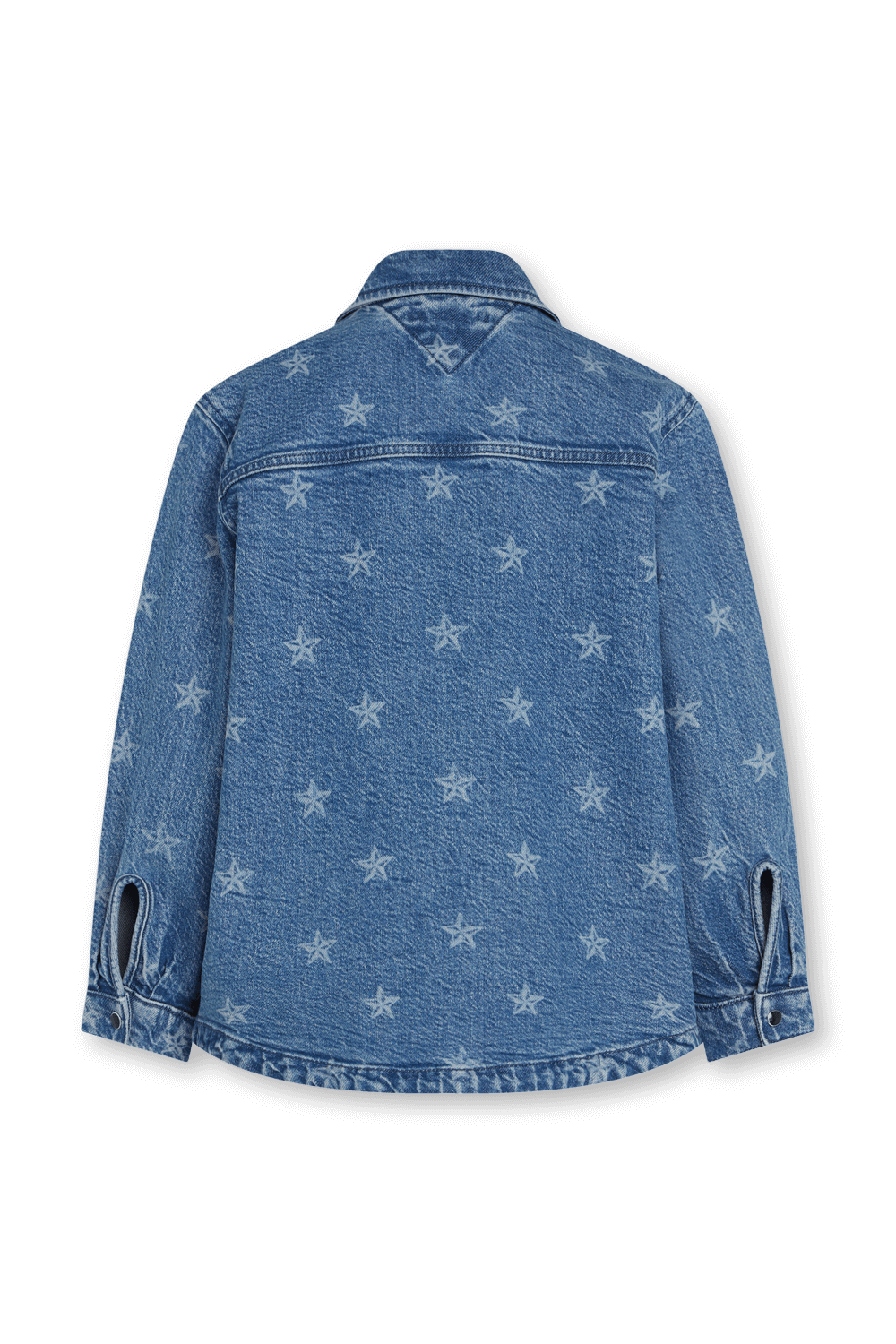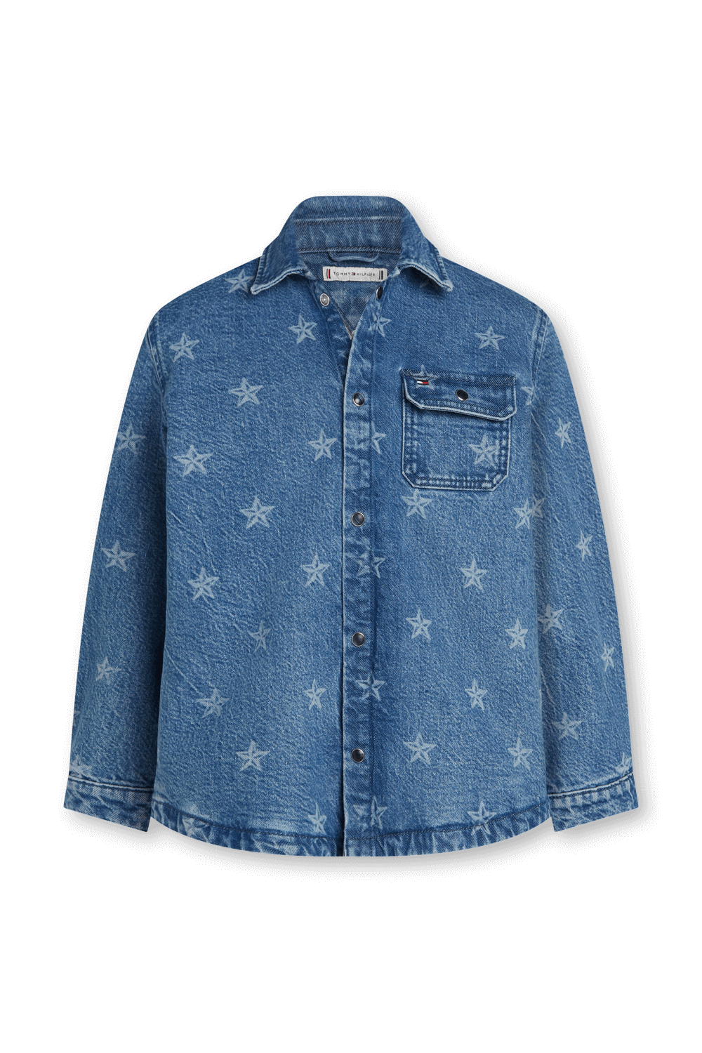 חולצה מכופתרת מבית Tommy Hilfiger, עשויה תערובת כותנת דנים ממוחזרת ואלסטן בצבע כחול ובשילוב רקמות כוכבים עדינות.