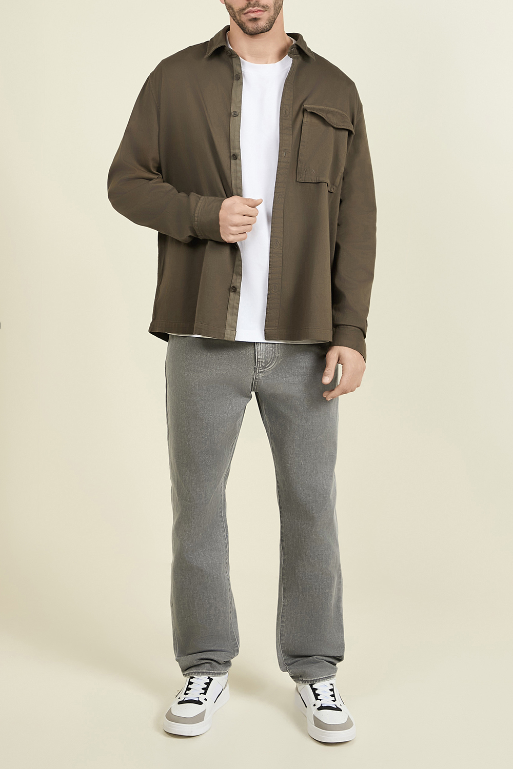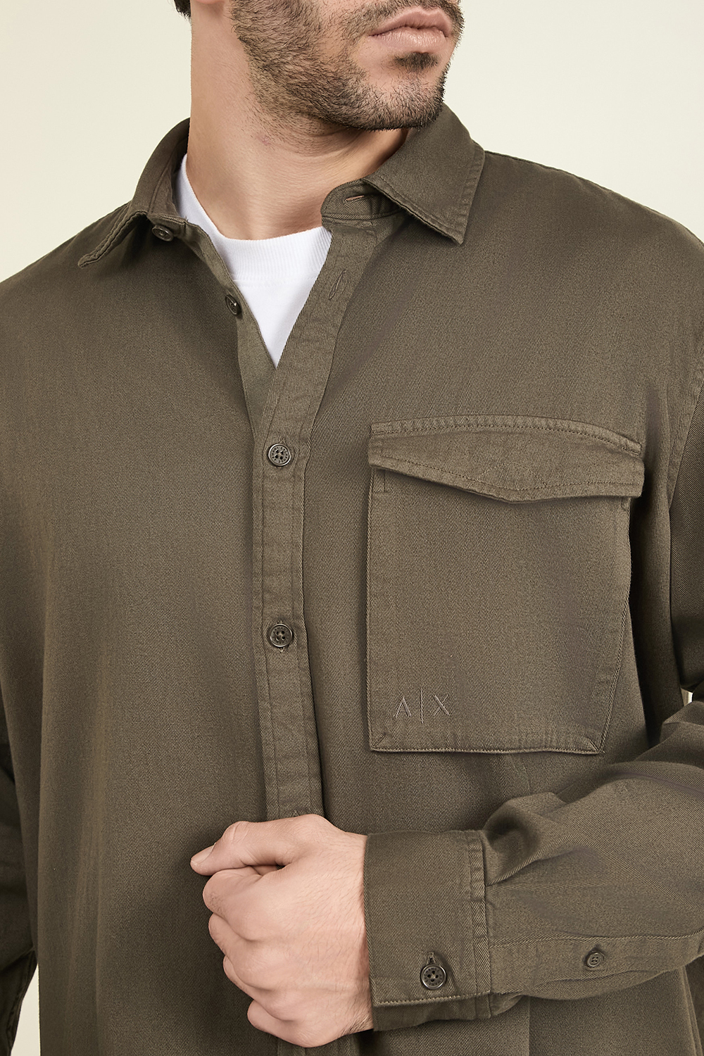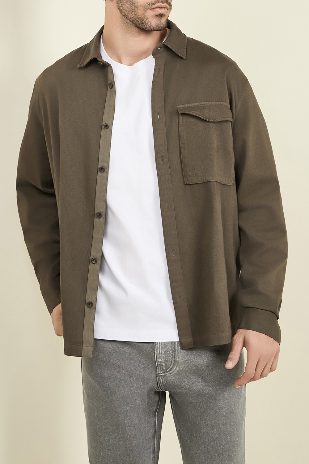 חולצת ז'קט מבית Armani Exchange. היא עשויה כותנה בצבע ירוק עם כיס אוברסייז - ללבישה מתחת לטישירט או בלעדיה.