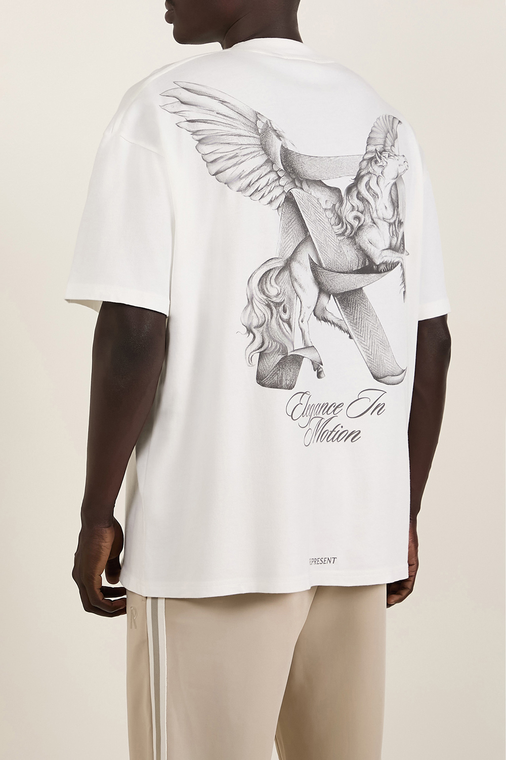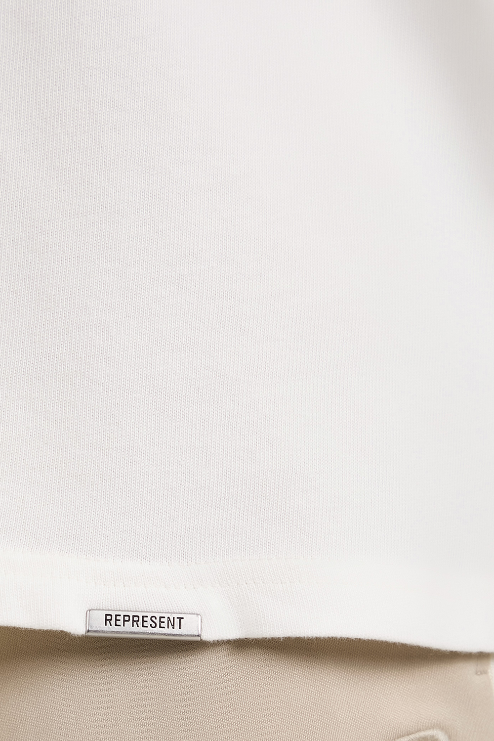 חולצת טי בגזרת אוברסייז מבית Represent. היא עשויה כותנה בצבע לבן עם הדפס מלפנים ומאחור.