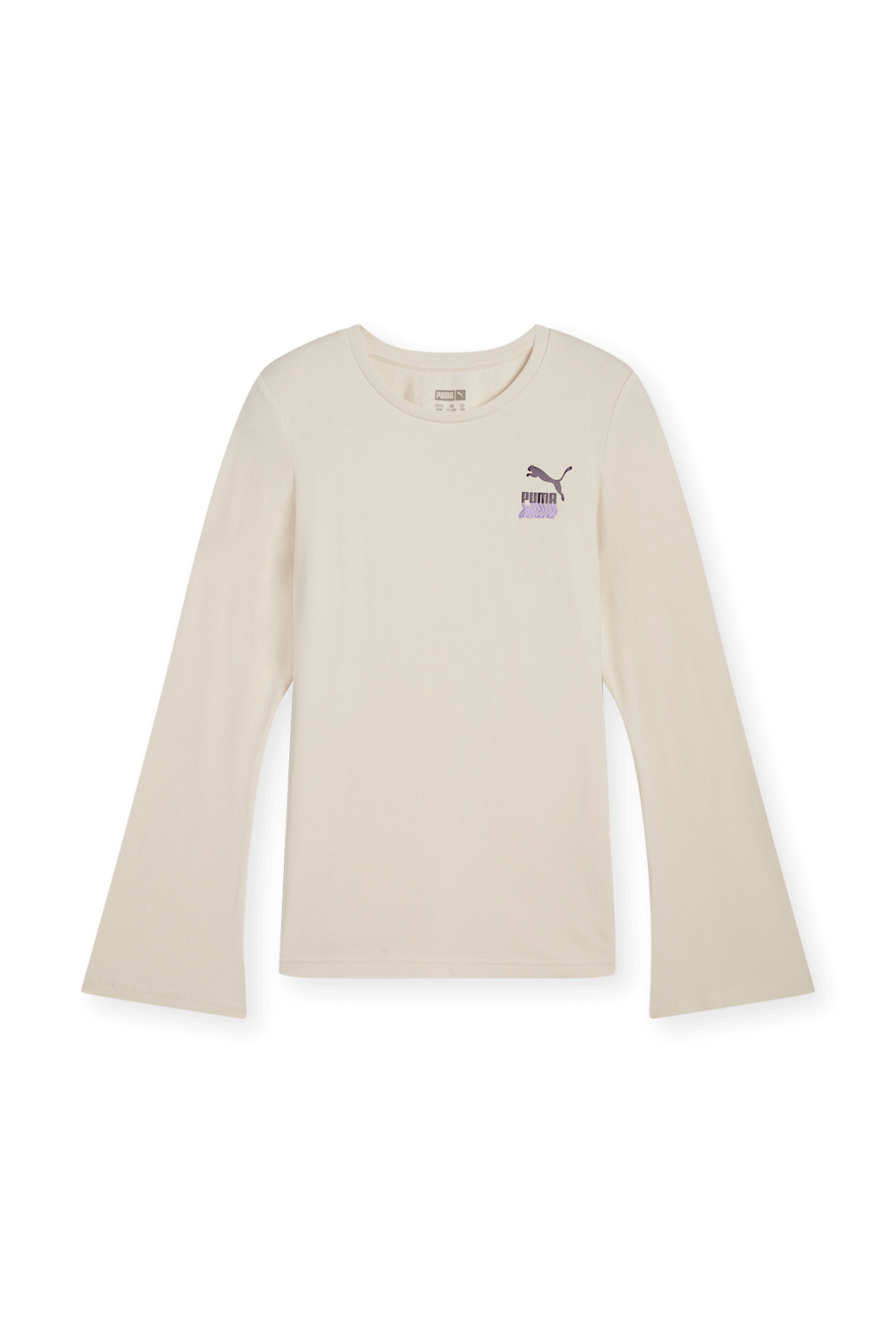 חולצת טי ארוכה בגזרת סלים מבית Puma, עשויה כותנה סטרצ'ית בצבע קרם עם שרוולים מתרחבים.