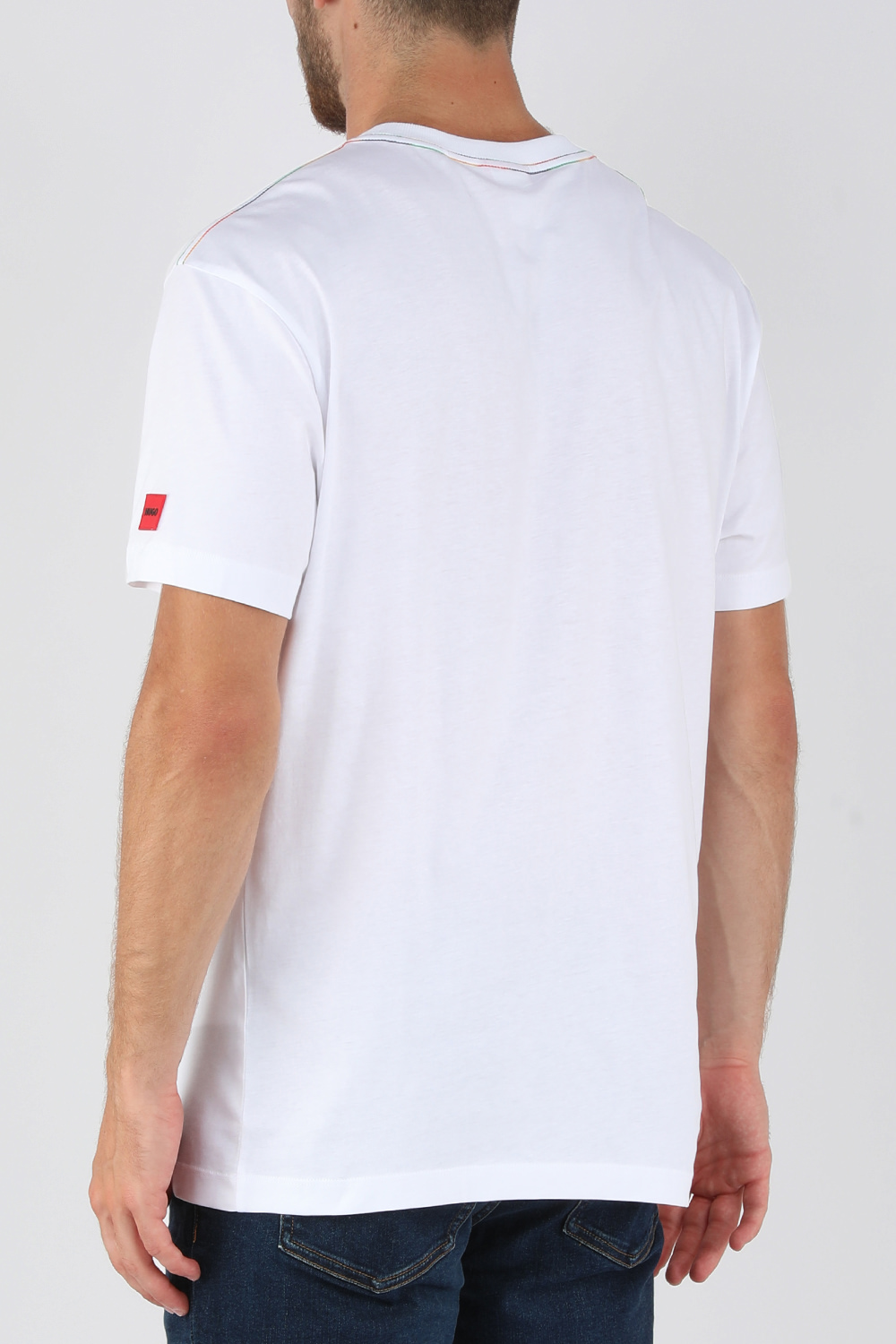 חולצת טי מודרנית של HUGO Menswear מתוך קולקציית הגאווה של המותג כתמיכה בארגון - ILGA World הפועל למען שוויון זכויות. חולצה העשויה מ-100% כותנה אורגנית איכותית הכוללת טלאי סיליקון מרובע וממותג הממוקם בצד השרוול השמאלי, לצד סלוגן צבעוני המזוהה עם הקולקציה. גזרה ישרה ומחמיאה עם צווארון עגול ושרוולים קצרים משלימה אתה סגנונה של החולצה.