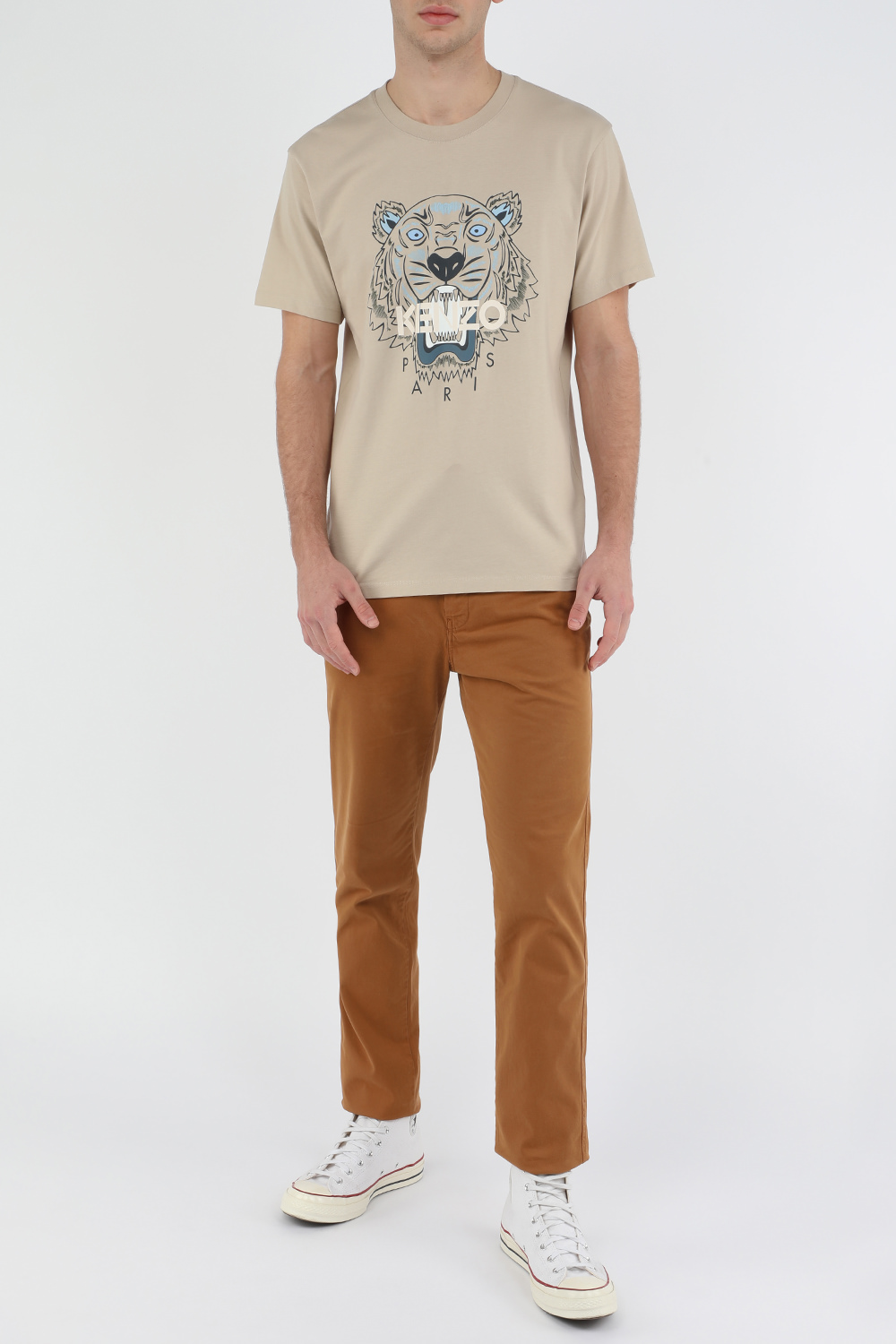 חולצת הלוגו האייקונית העשויה 100% כותנת גרזי איכותית בגוון בז` בעיצוב בית האופנה הצרפתי-יפני Kenzo מציגה על חזיתה הדפס של ראש הנמר המזוהה עם המותג בגוון שחור וכחול. גזרתה של חולצה זו נינוחה ומונחת בעדכנות על הגוף והיא תעניק סטייל מוביל למגוון אאוטפיטים.