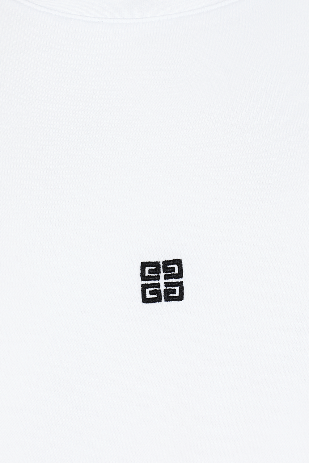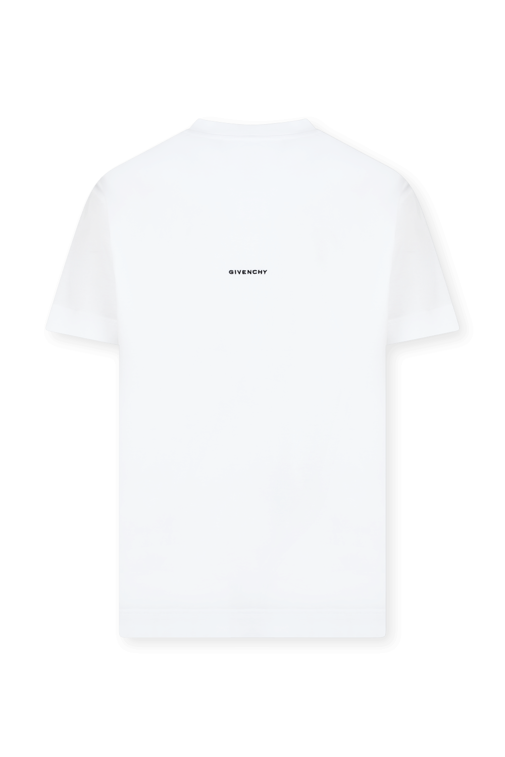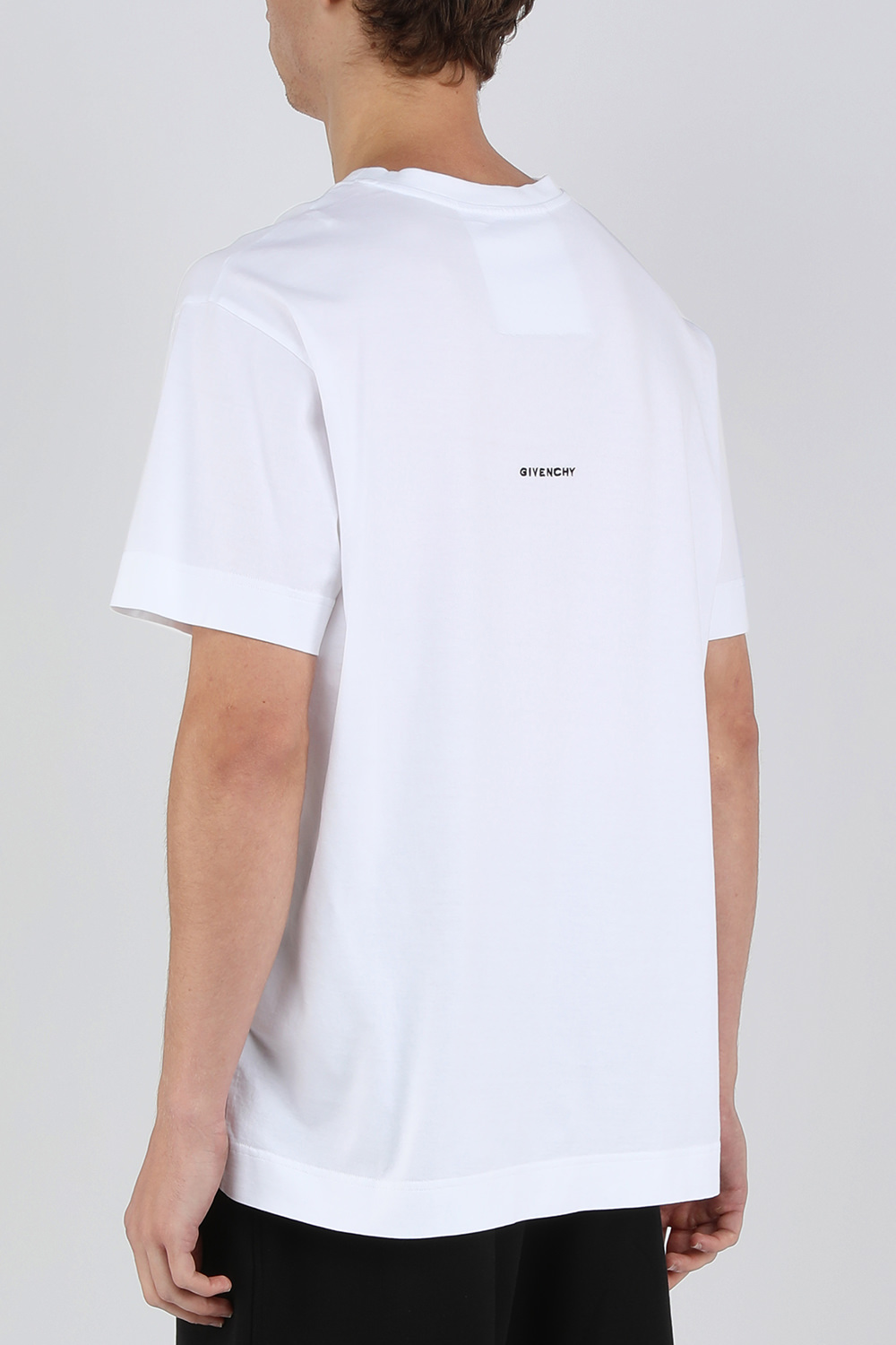 חולצת טי מבית מותג העל ז'יבנשי. זהו דגם העשוי בד כותנה משובח בגוון לבן. לפריט גזרה ישרה ונינוחה עם צווארון מעוגל ושרוולים קצרים. סמלי המותג מופיעים בגוון קונטרסטי על החזית והגב.