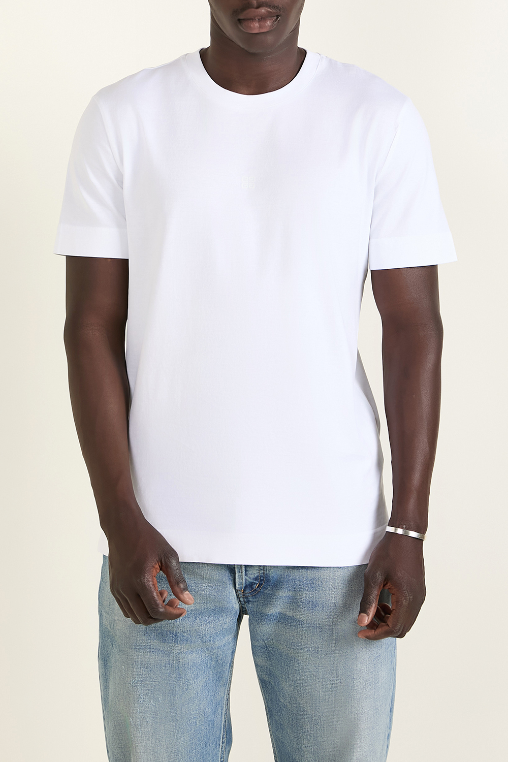 חולצת טי בגזרת סלים מבית Givenchy, עשויה כותנה בצבע לבן עם צווארון מעוגל בשילוב רקמת לוגו בחזית.